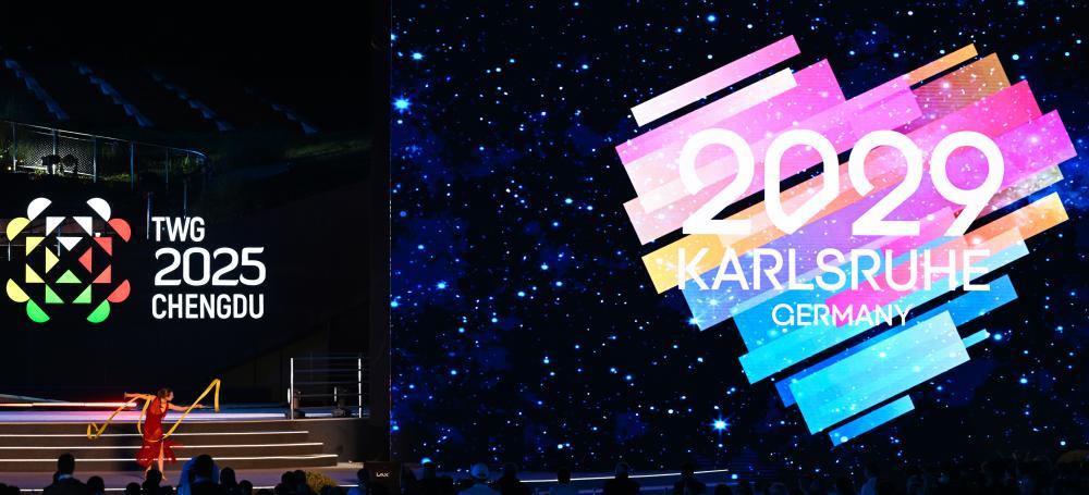 成都世运会组委会主席施小琳、国际世界运动会协会主席何塞·佩鲁雷纳先后致辞,向为本届世运会圆满成功作出贡献的所有人员表示感谢。下届世运会举办城市德国卡尔斯鲁厄市市长弗兰克·门特鲁普致辞,热情邀请全球宾客四年后相聚卡尔斯鲁厄。