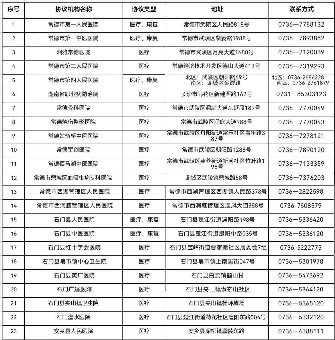 附:常德市2025至2026年度工伤保险服务协议机构名单