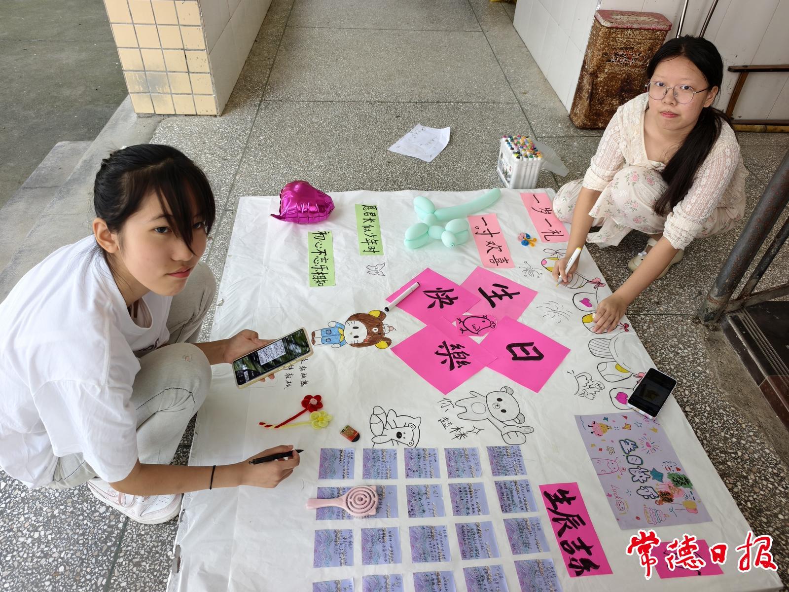 当天,是常德市随手公益志愿者服务中心(简称“随手公益”)乡村儿童夏令营结营的日子,也是志愿者、湖南城市学院大二学生蔡金颖的生日。大家为她精心准备了别具一格的生日会。30多个小伙伴在心愿卡上写下祝福,还是高中生的小助教覃海瑛、蒋沁源花了一天的时间,精心制作了漂亮的生日彩板,志愿者叔叔阿姨的车灯照亮夜空,而她陪伴了半个月的孩子们挥舞着荧光棒和气球,为亲爱的“蔡校长”庆生。