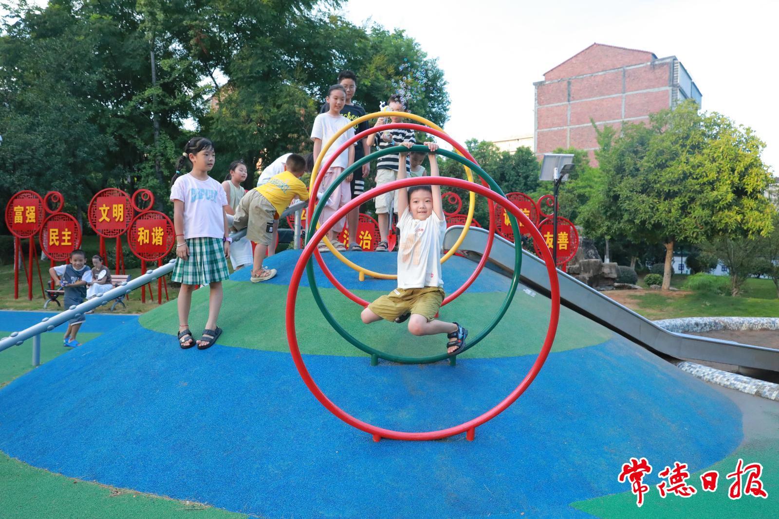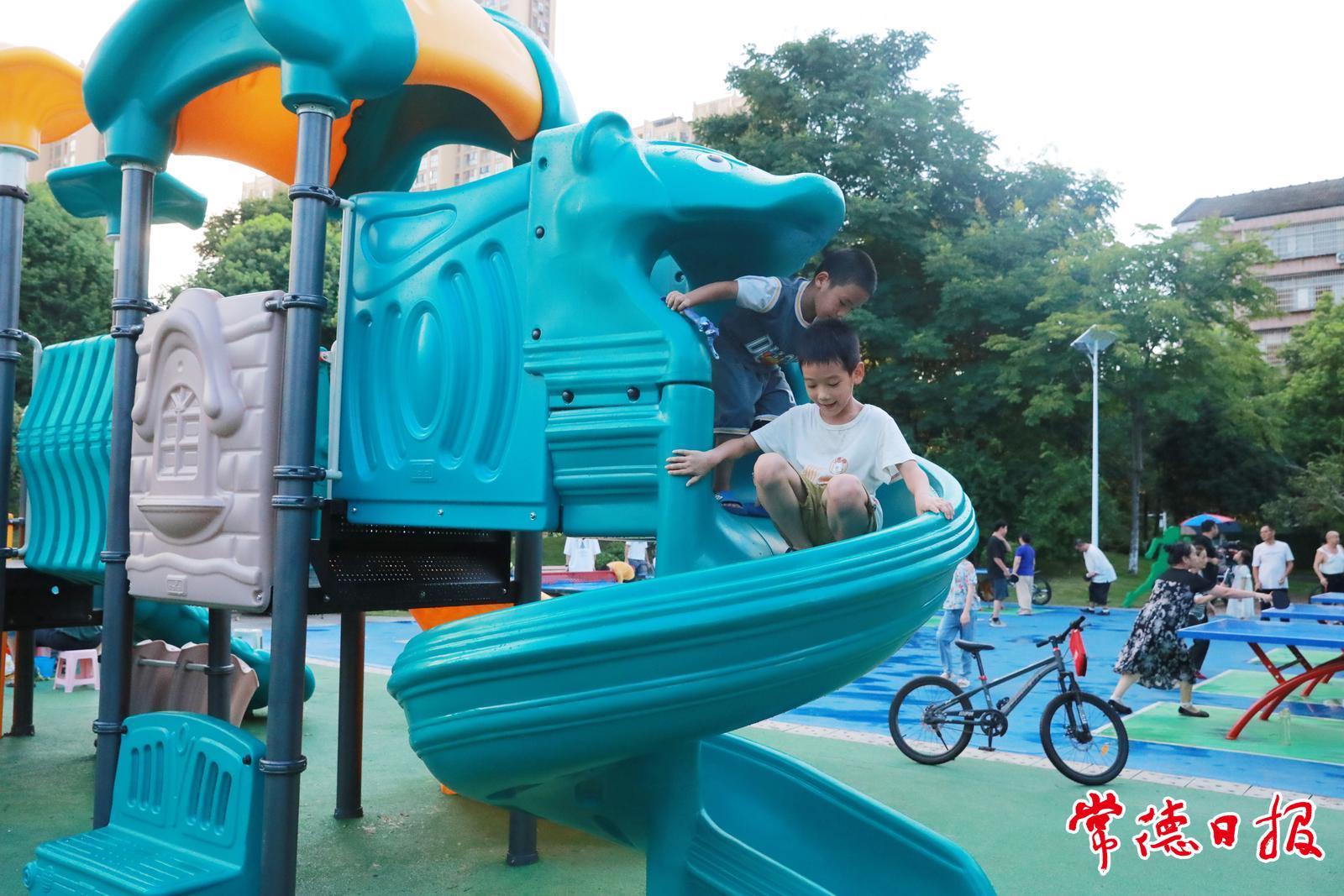 常德日报记者 刘清 陈子尧 伍银 冯顺前 文/图 8月21日傍晚,鼎城区陈辉公园的沙池里洋溢着孩子们的欢笑声。居民李芳站在一旁,看着5岁的儿子小宇正专心致志地堆砌沙堡,脸上满是欣慰:“公园改造前可不是这样。原本孩子都不愿意下楼玩,现在倒好,一到傍晚就主动拉着我要来公园,不到饭点根本喊不回去。”