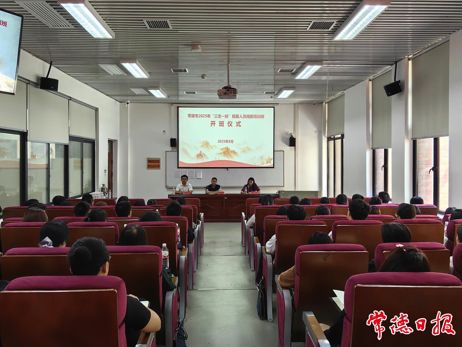 常德日报记者 姚懿容 通讯员 徐岚 张德贤 文/图 8月25日,常德市2025年“三支一扶”招募人员岗前培训班在常德科技职业技术学院开班。经过层层选拔,最终脱颖而出的58名高校毕业生将参加为期5天的集中培训,系统学习“维护国家安全”“农文旅时代的乡村振兴”“DeepSeek工作生活场景提升赋能”“生态环境工作实务探讨”等多项专题课程。