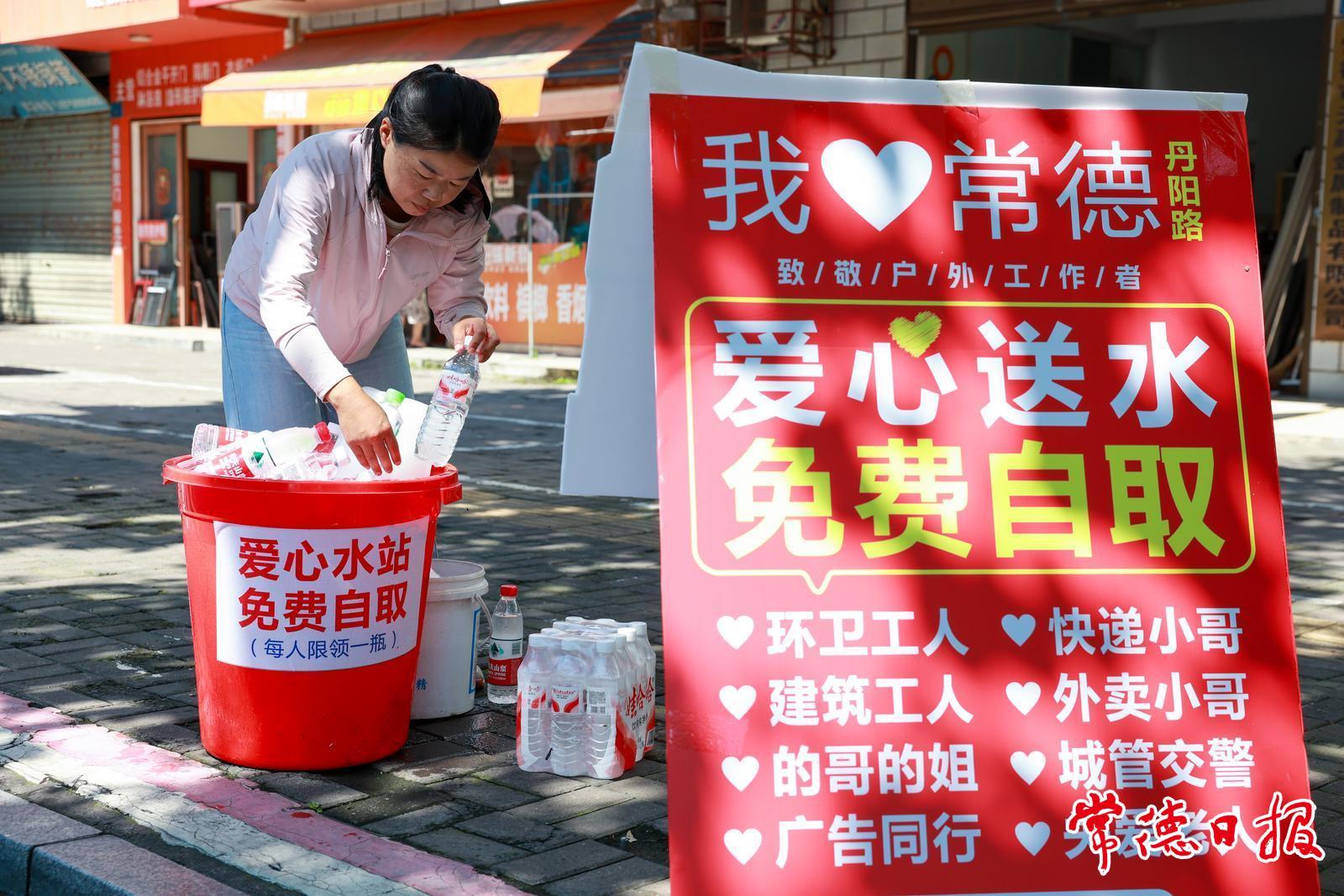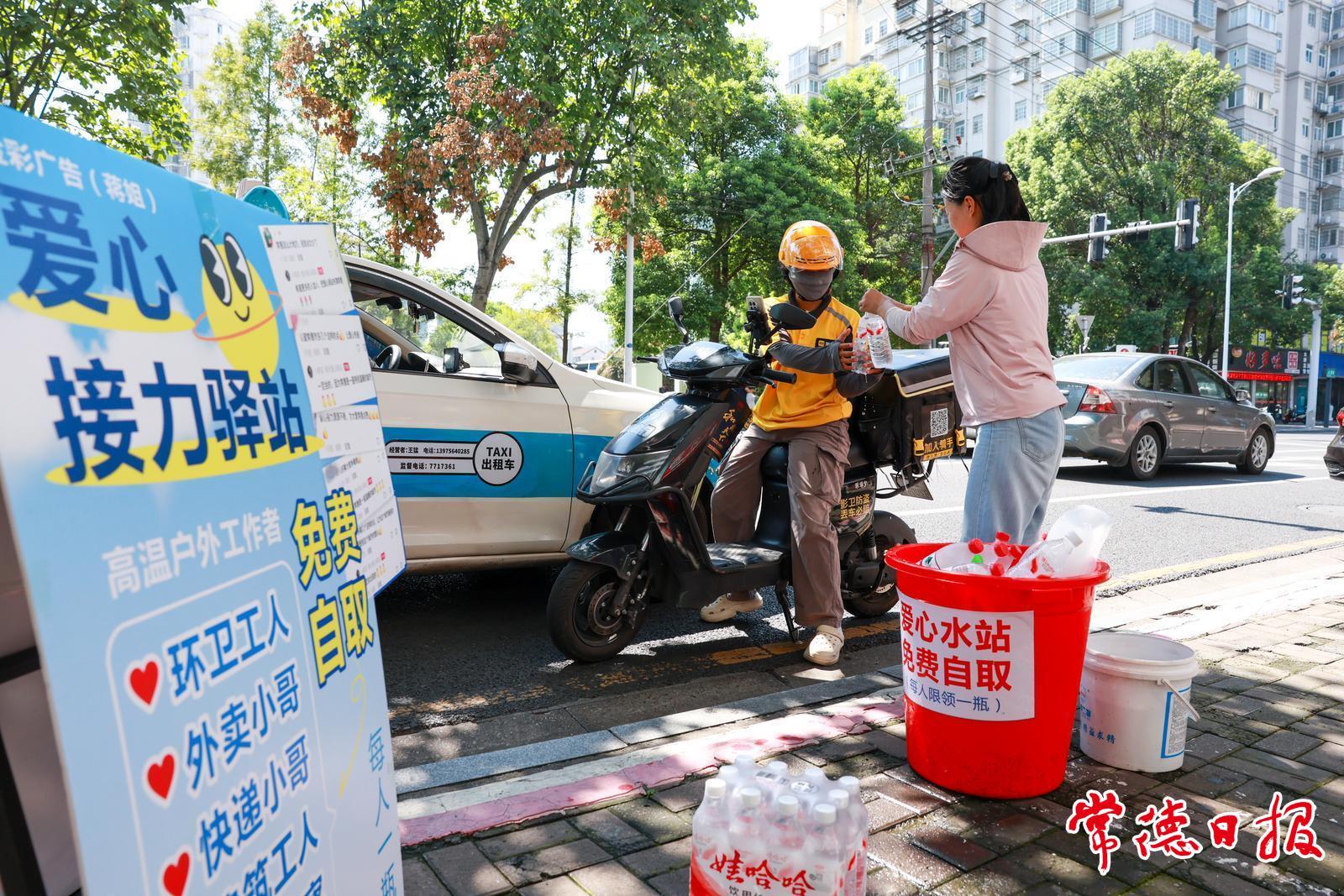 常德日报记者 蔡文龙 文/图 今年夏天,常德一位“95后”创业青年青磊自发设立“爱心驿站”,自费为环卫工人、快递小哥、建筑工人等户外劳动者送上冰水与西瓜。这份善意未曾止步,它悄然流淌。市民蒋中艳主动接过这一棒,在她位于市城区丹阳路的店铺门口,也摆起了清凉站点,将这份关怀延续下去。