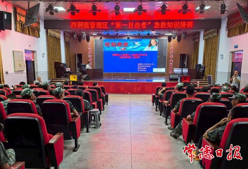 常德日报记者 杨荣国 通讯员 姚鹏杰 文/图 8月25日,西洞庭管理区卫健局与区一中联合主办的“第一目击者”现场急救知识培训在区一中礼堂举行。本次培训面向区一中军训新生,旨在提升学生应急救护能力,营造“人人懂急救、人人敢施救”的校园安全氛围。