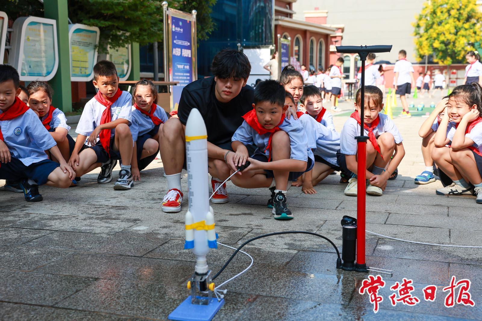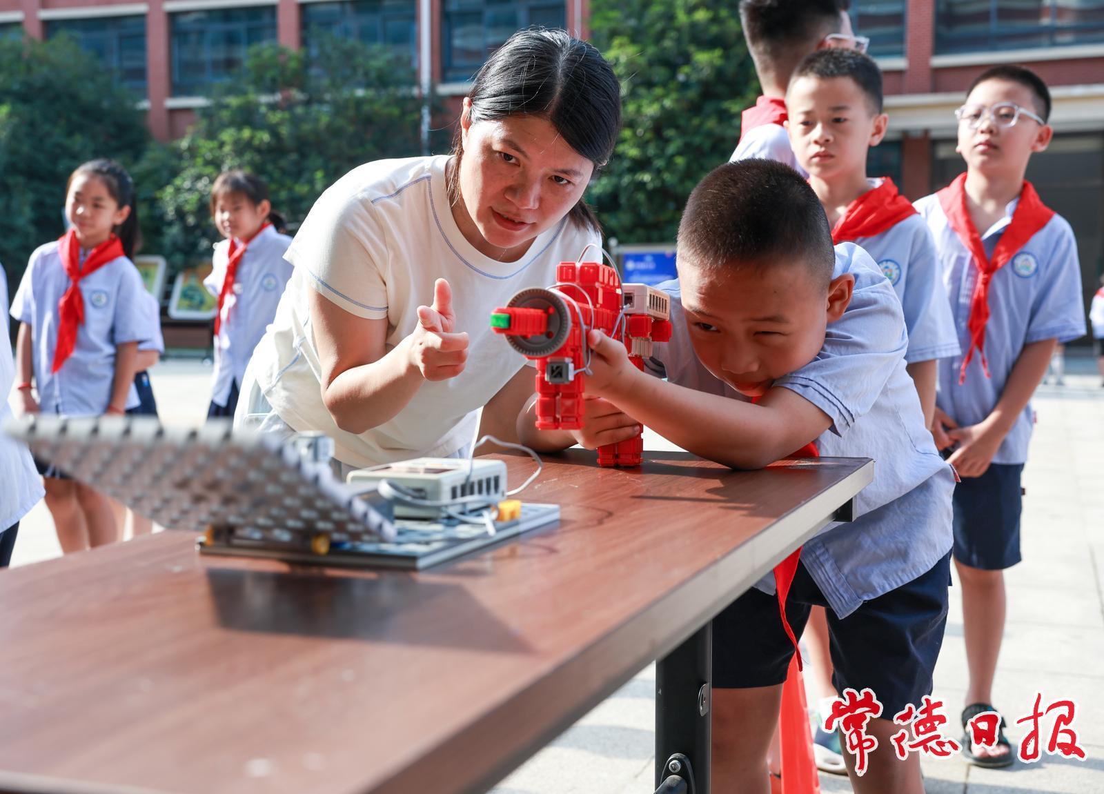 常德日报记者黄云霞 蔡文龙 通讯员罗玉婵 黄爱琳 文/图 开学啦!武陵区第一小学校园内再次热闹起来。今年,学校围绕“国防+科技”打造了一系列沉浸式体验活动,让孩子们在互动中传承红色精神,感受科技魅力。