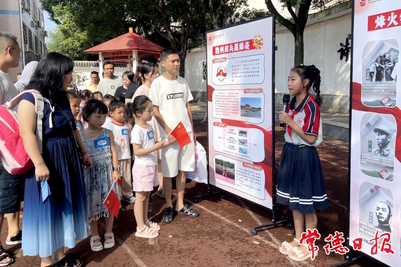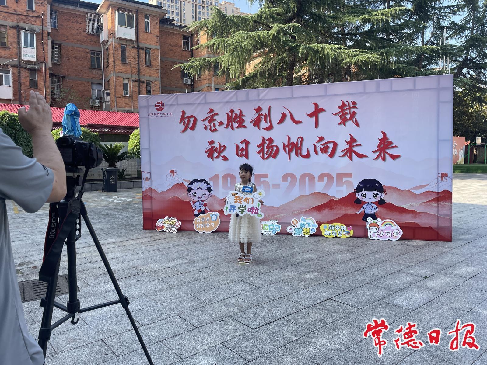 常德日报通讯员 蒋蕙宏 王丽雅 文/图 8月31日,武陵区胜利路小学以“勿忘胜利八十载,秋日扬帆向未来”为主题,举行秋季开学迎新暨纪念中国人民抗日战争暨世界反法西斯战争胜利80周年教育活动,为全体师生呈现了一场兼具庄重仪式感与沉浸式体验的特色活动,正式拉开新学期的序幕。