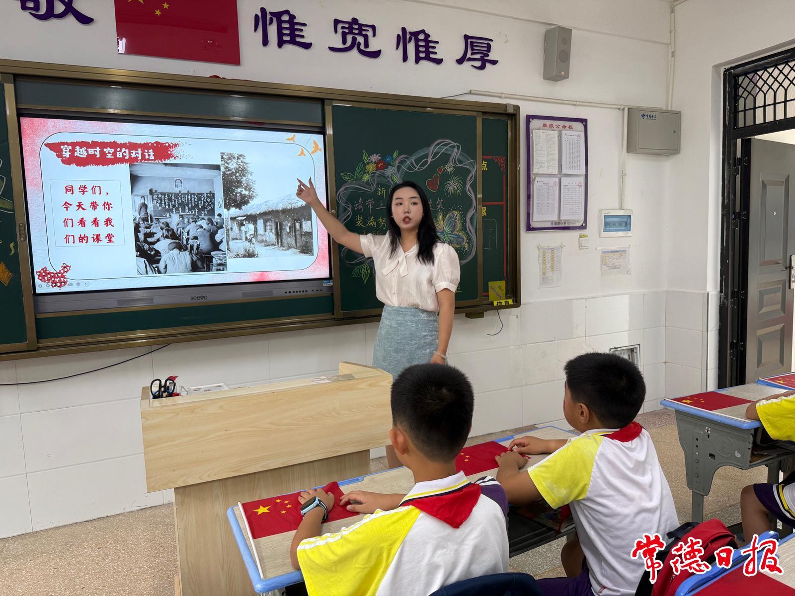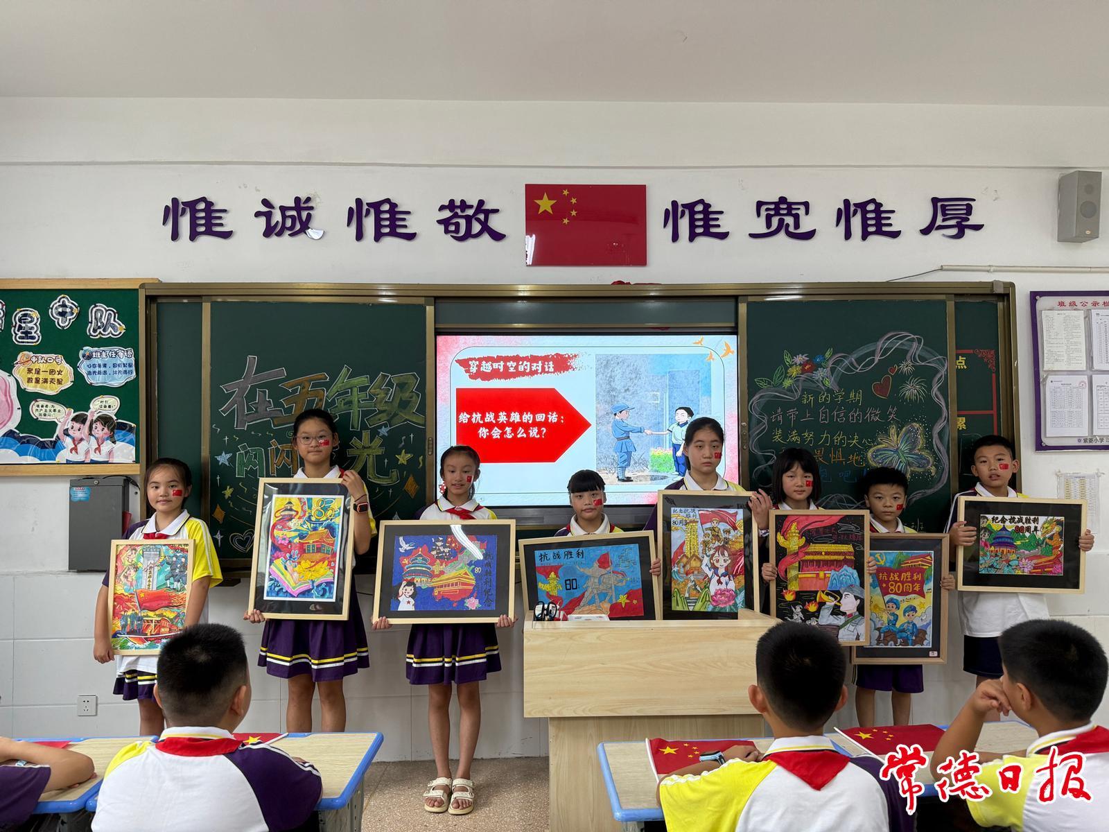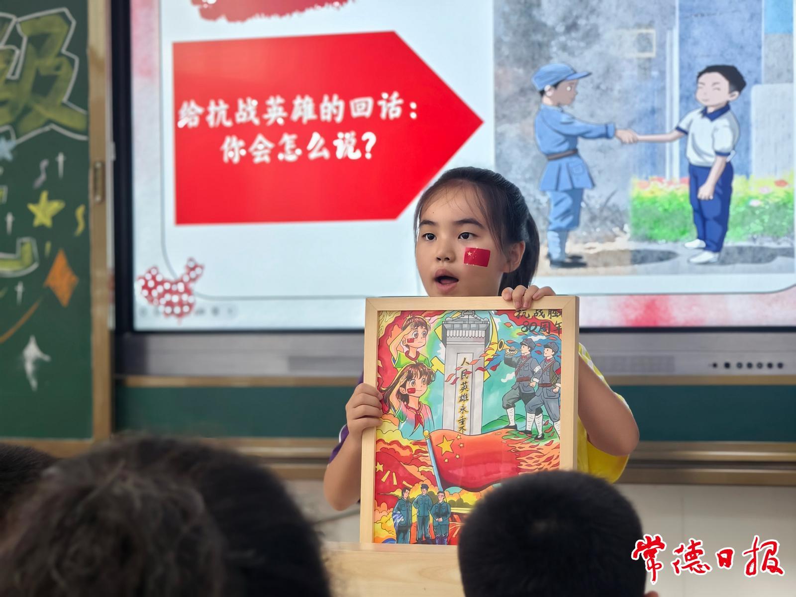 常德日报记者 黄云霞 通讯员 高虹 刘彬彬 文/图 “平型关大捷打破了日军不可战胜的神话,狼牙山五壮士用生命诠释了民族气节!”9月1日上午,武陵区紫菱小学45班教室内,班主任肖伊含以抗战故事为核心,上了一堂别开生面的思政课。