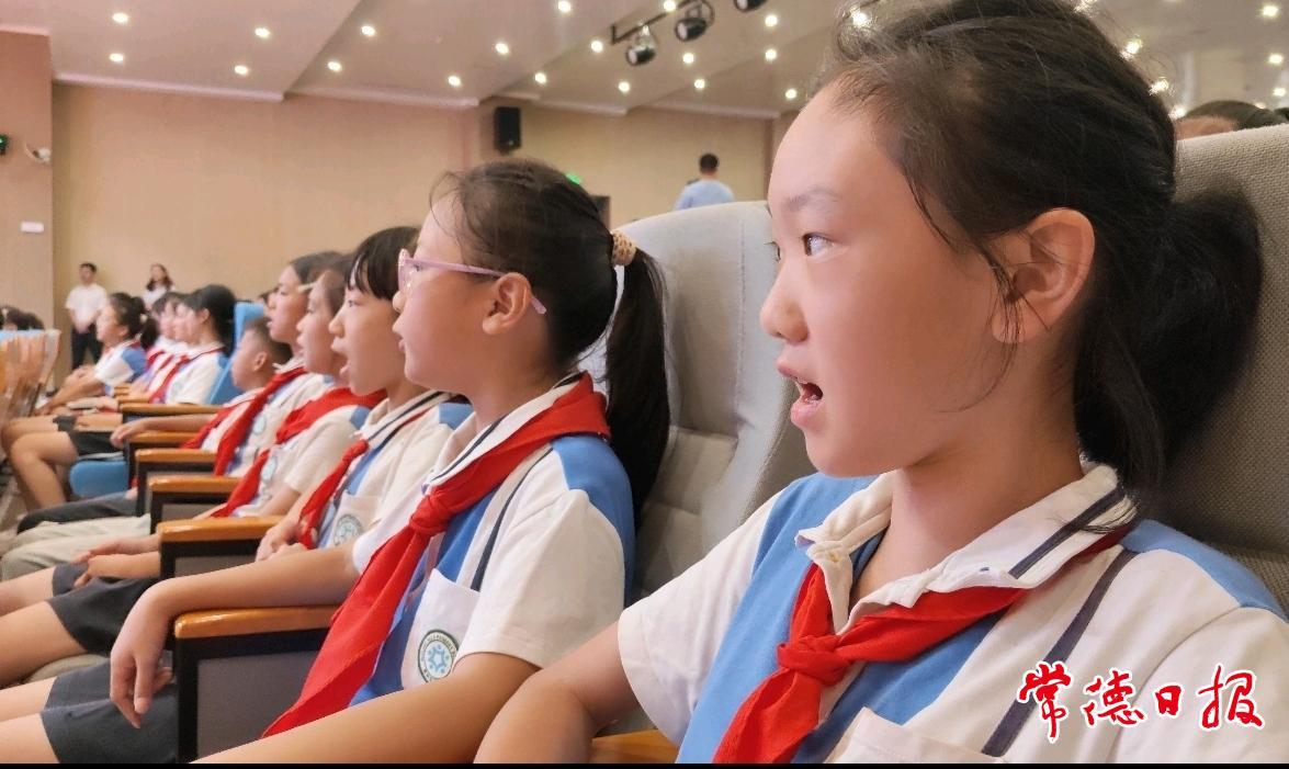 “80多年前,我们这座城经历了常德细菌战、常德城保卫战。”活动现场,“五老”代表曹先辉以生动质朴的语言,拉开了常德抗战历史宣讲的序幕。台下师生们聚精会神,红色的种子在孩子们心中悄然扎根。随后,师生共同观看由武陵区档案馆参与制作的抗战纪录片《永不尘封的档案》。屏幕上,历史影像记录着战争的残酷与苦难,孩子们紧握小拳头,神情凝重;老师们眼眶泛红,深受触动。公益广告《父辈的嘱托》也是取材于常德抗战期间的故事,通过直观的影像资料,让师生们更加坚定了铭记历史、珍爱和平的信念。“你是遥遥的路,山野大雾里的灯,我是孩童啊走在你的眼眸……”活动尾声,全场师生齐声高唱歌曲《如愿》。