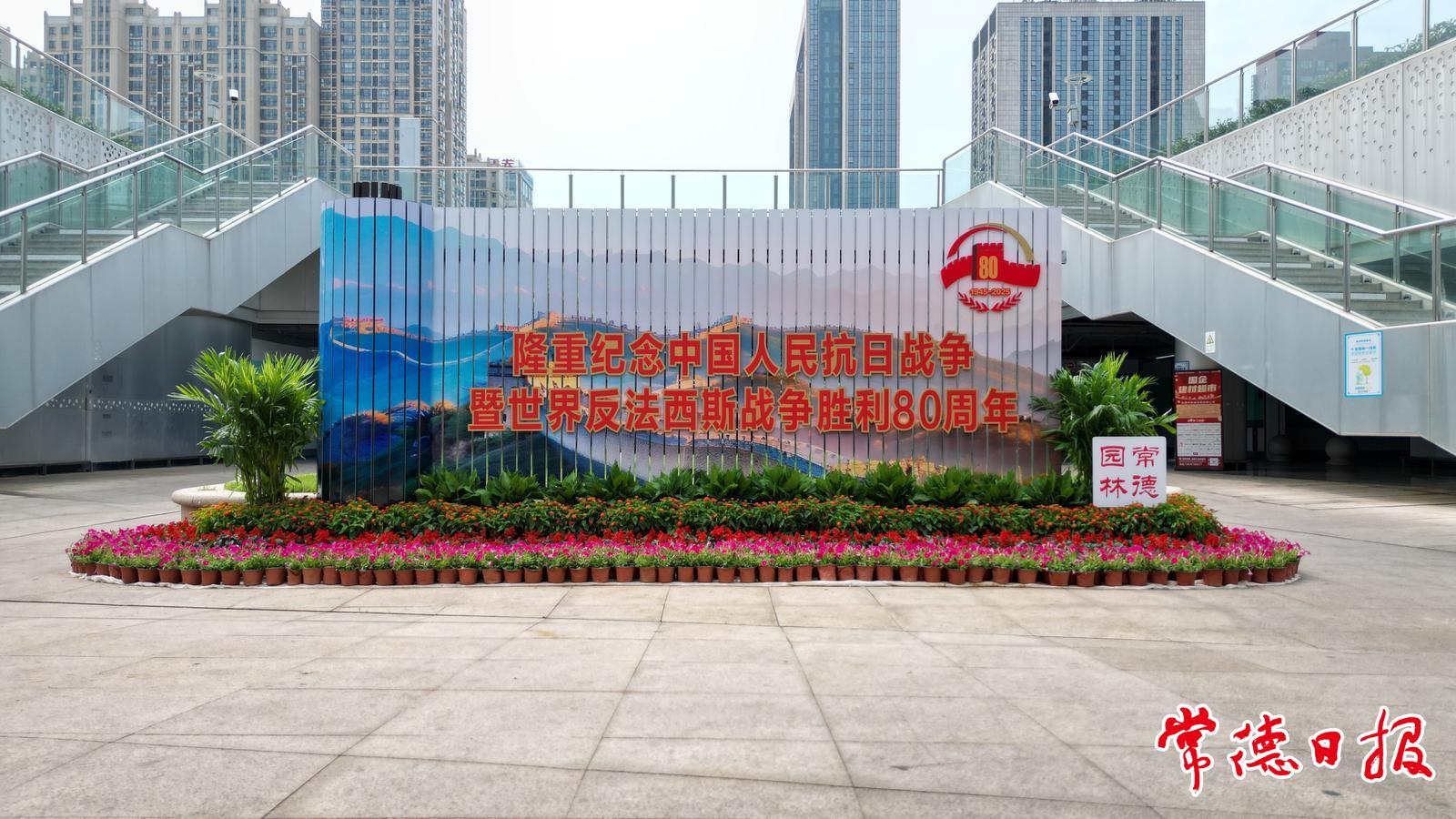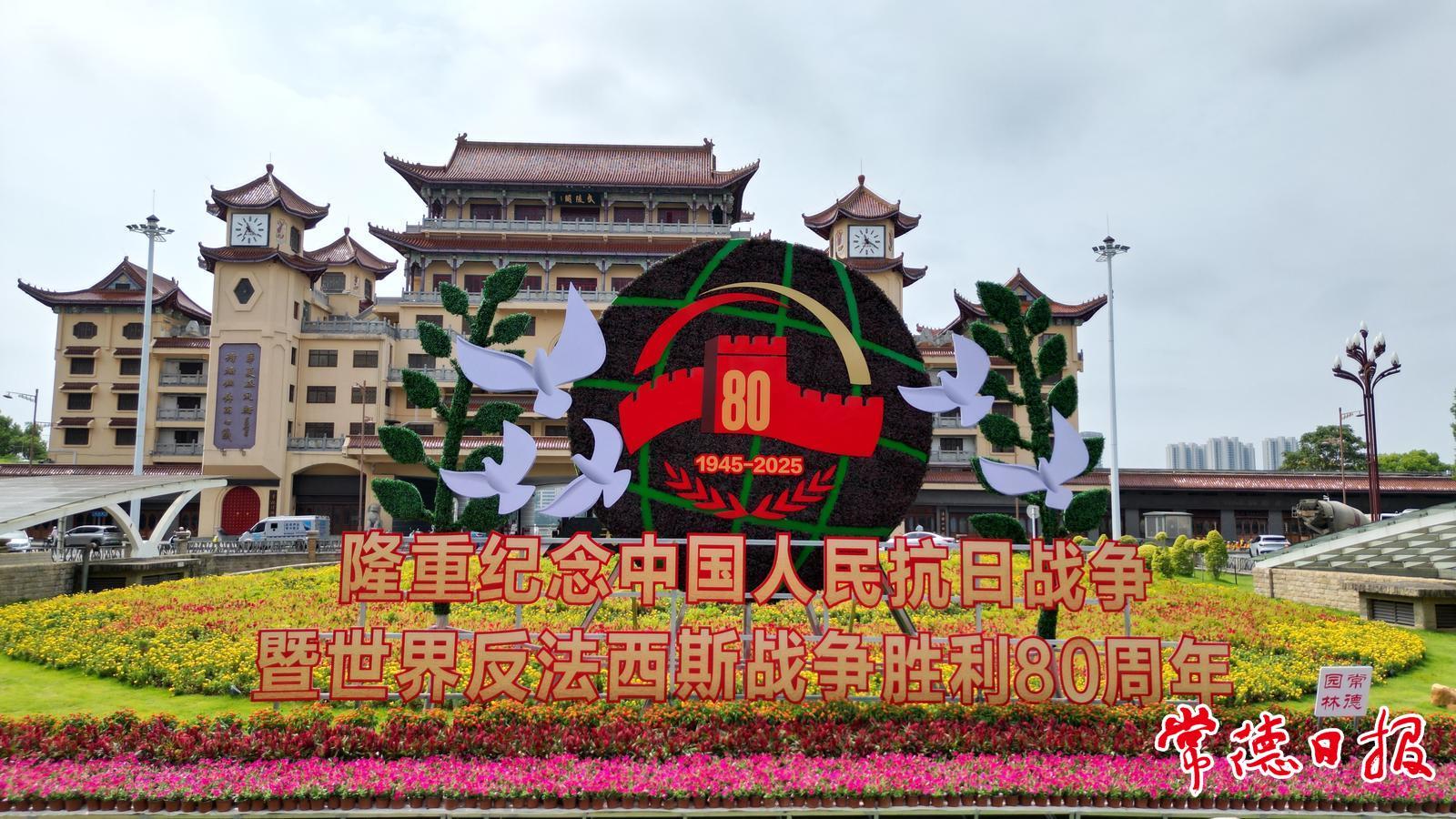 常德日报记者 伍银 冯顺前 通讯员 陈炯明 文/图 近日,为纪念中国人民抗日战争暨世界反法西斯战争胜利80周年,常德市园林绿化服务中心在常德河街、常德站、滨湖公园及武陵阁四处城市地标,精心布置了主题花坛。这些花坛以鲜明的主题文字和富有层次的花卉造型,成为市民游客驻足观赏、拍照留念的热点。