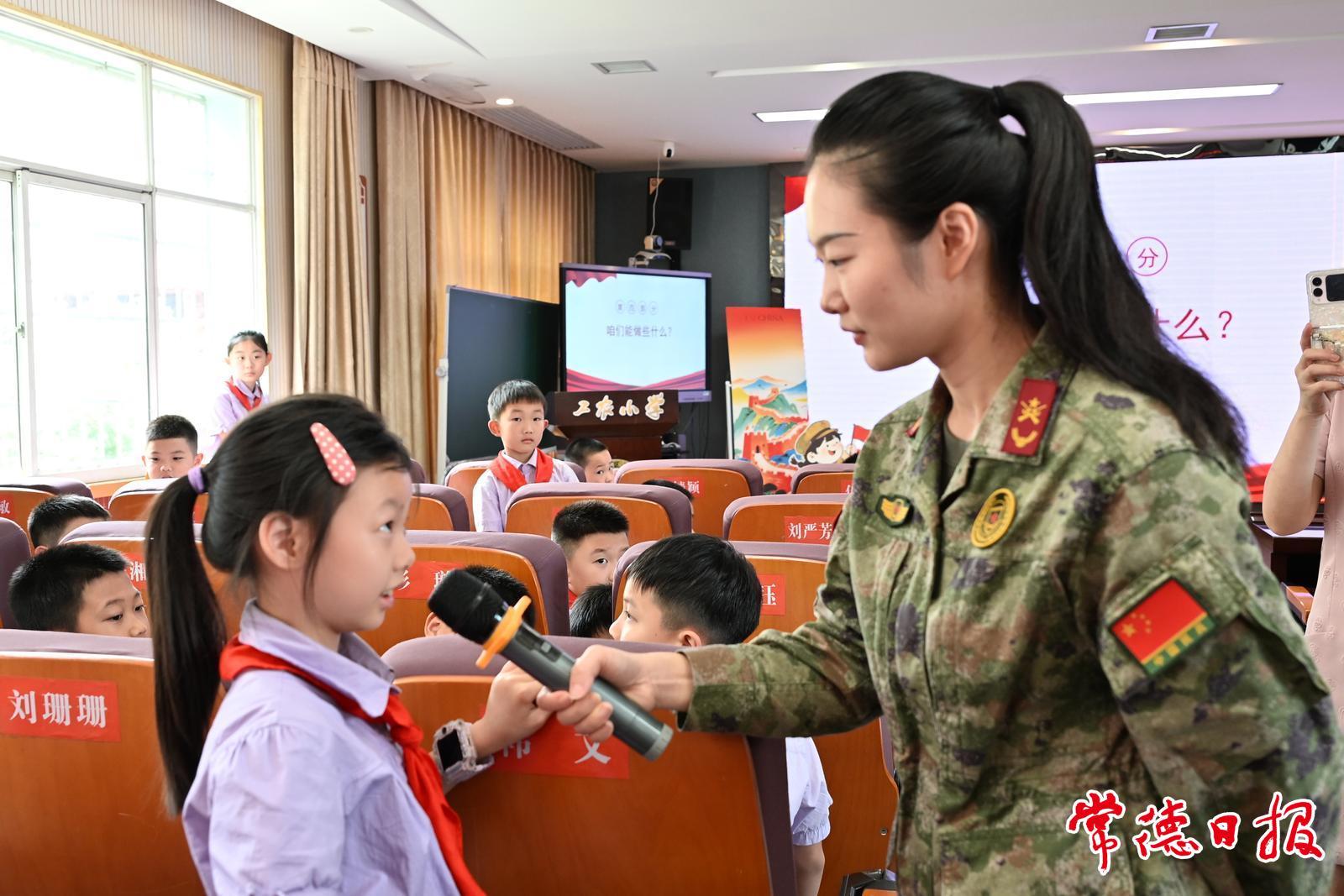 常德日报记者 姚璇 通讯员 葛诗倩 文/图 9月1日上午,武陵区工农小学联合武陵女子民兵志愿宣讲团队,开展以“从阅兵场到课堂:感受大国力量”为主题的国防教育思政大课堂活动。今年是纪念中国人民抗日战争暨世界反法西斯战争胜利80周年,学校将“九三阅兵”叙事融入课堂教学,通过现场宣讲、远程连线、互动问答等形式,为学生打造一堂沉浸式、互动型的爱国主义教育课。