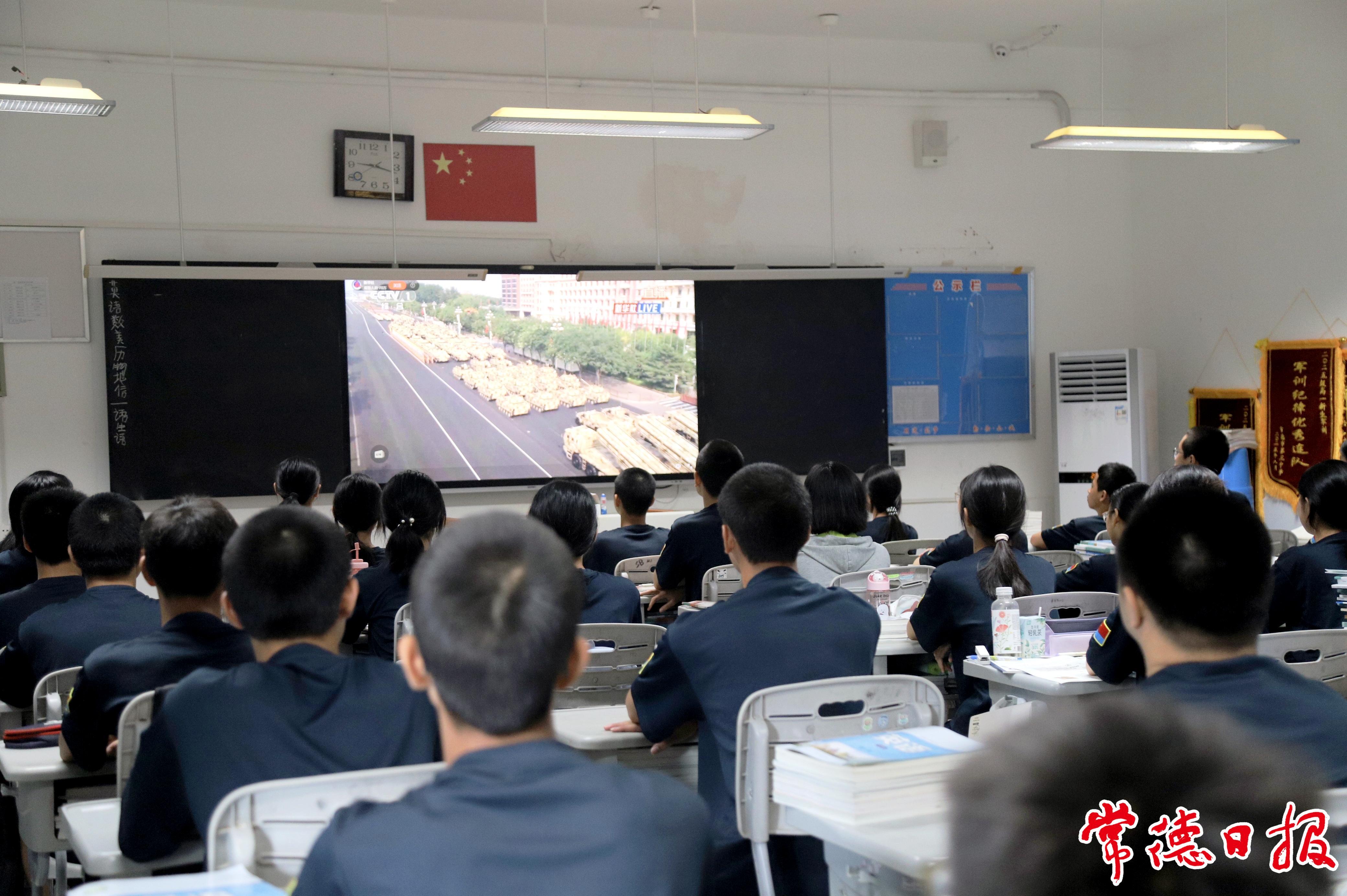 常德日报记者 杨鑫 通讯员 杨维维 文/图 9月3日上午,常德市三中组织全体师生集中观看纪念中国人民抗日战争暨世界反法西斯战争胜利80周年大会直播盛况。