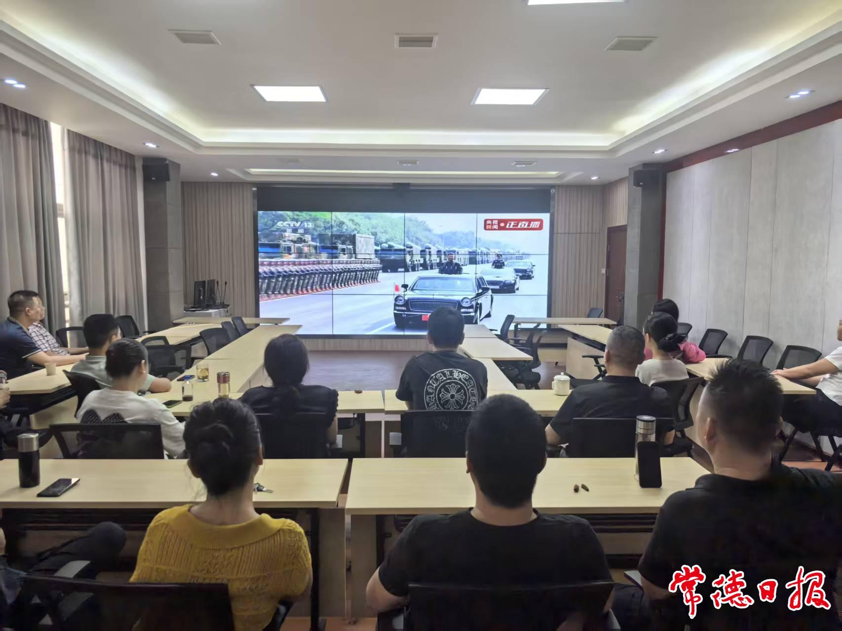 常德日报记者 雷晰涵 通讯员 杨春熠 文/图 9月3日上午,柳叶湖旅游度假区柳叶湖街道组织全体干部集中观看纪念中国人民抗日战争暨世界反法西斯战争胜利80周年大会直播盛况,共同铭记历史、缅怀先烈,感受祖国的强大。
