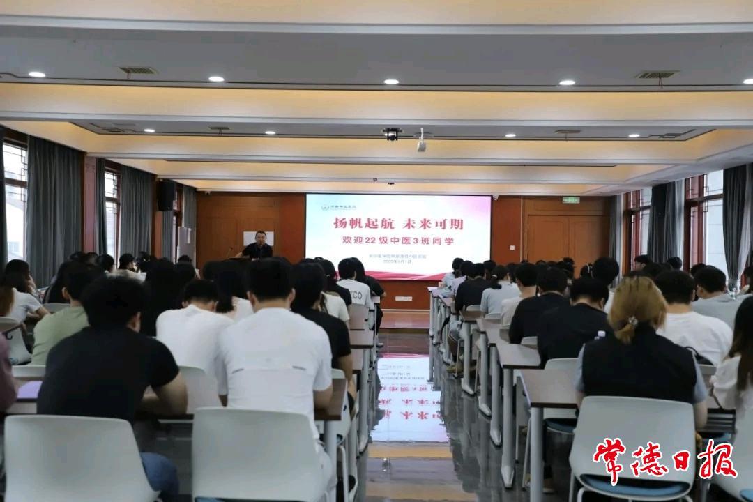 常德日报记者 李白 通讯员 黄立雪 文/图 9月1日,长沙医学院附属澧县中医医院举行2022级中医3班开学典礼。此次典礼旨在迎接新学期见习生涯,夯实学生的专业基础,为新阶段的学习与实践奠定坚实基础。
