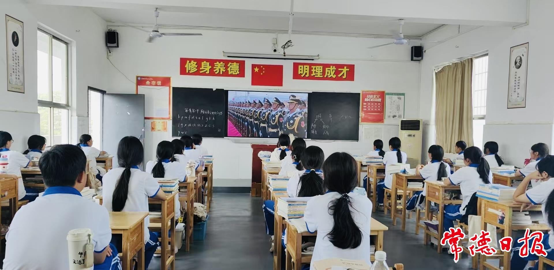常德日报记者 黄云霞 通讯员 李佳骏 文/图 9月3日上午,常德新德才职业学校组织全校师生集中观看纪念中国人民抗日战争暨世界反法西斯战争胜利80周年大会直播。学生通过教室多媒体设备同步收看阅兵式,整齐的方阵、先进的装备、铿锵的步伐让他们激情澎湃、满怀豪情。