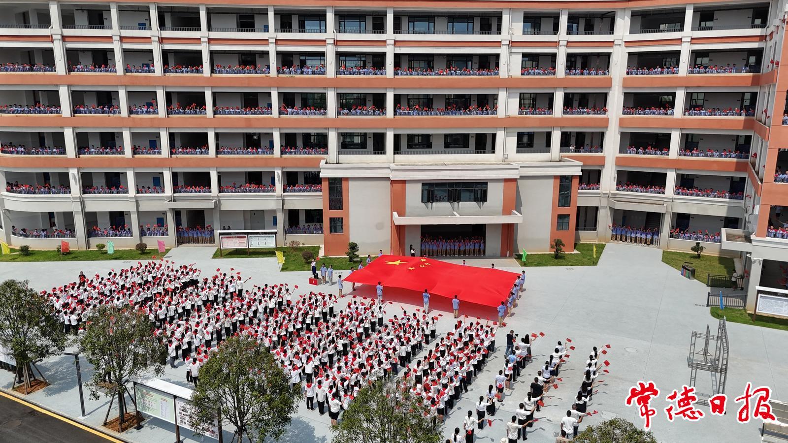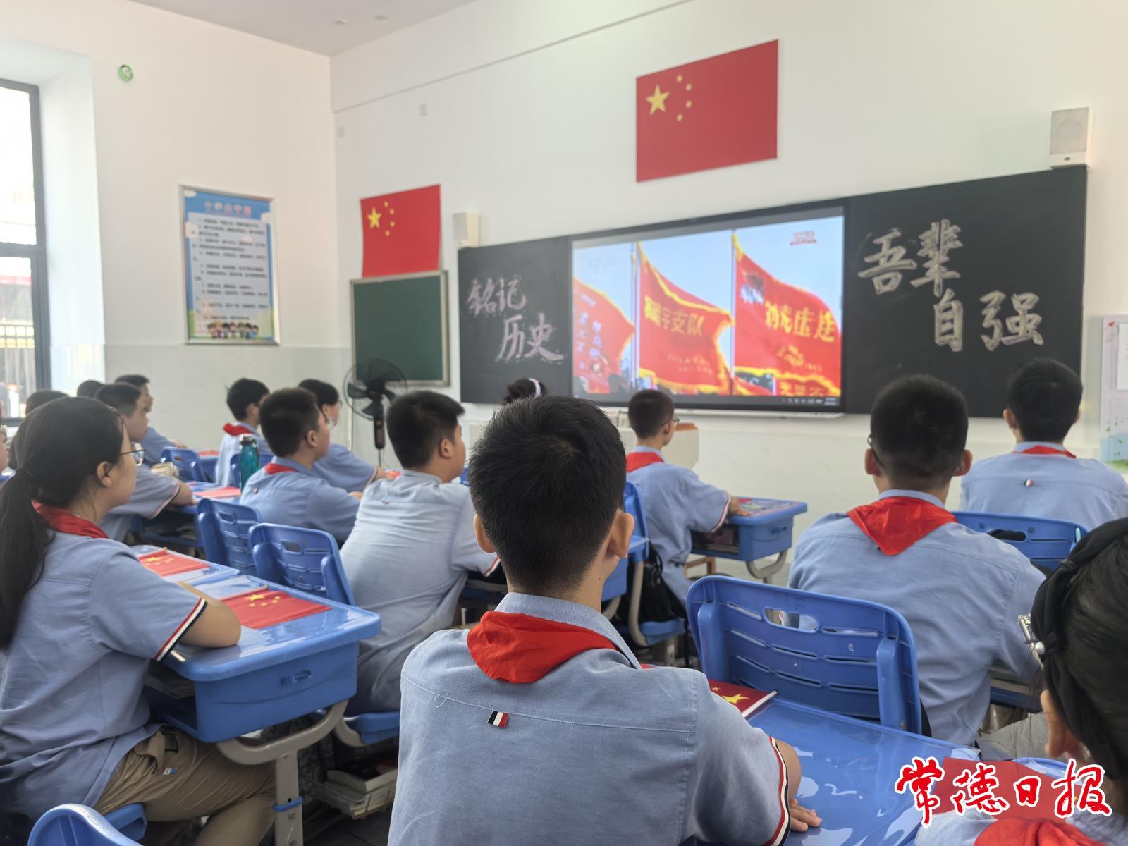 常德日报记者 韩冬 徐珊珊 通讯员 李坤 文/图 9月3日上午,常德市第四中学校全体师生观看了纪念中国人民抗日战争暨世界反法西斯战争胜利80周年大会直播,开展了“铭记历史、珍爱和平、开创未来”主题班会,快闪活动中,“强国有我”的铿锵誓言响彻校园……一系列生动而深刻的爱国主义教育课让人热血沸腾。