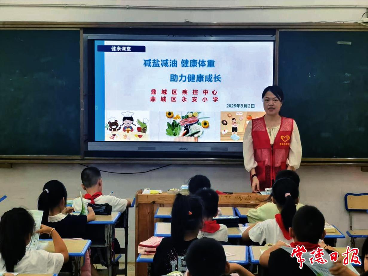 常德日报记者 张渝婧 通讯员 张又全 文/图 9月2日下午,鼎城区疾控中心工作人员走进永安小学三年级八班的课堂,开展了一场别开生面的“减盐减油”健康知识宣传课。