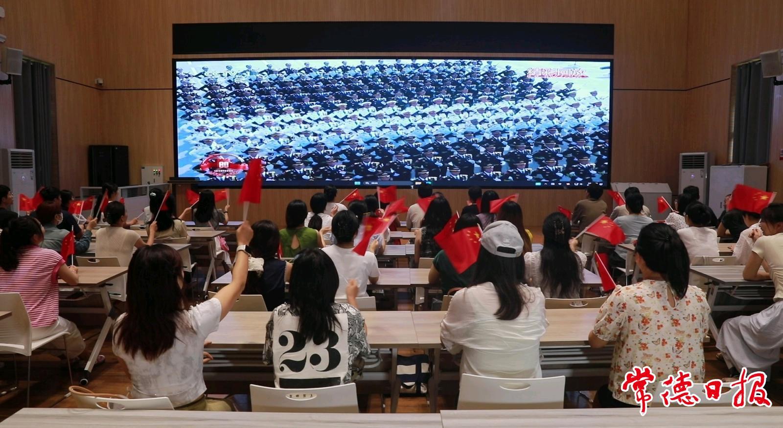 常德日报记者 江一舟 李龙 通讯员 贺敏 文/图 9月3日上午,纪念中国人民抗日战争暨世界反法西斯战争胜利80周年大会在北京天安门广场隆重举行。常德科技职院全体党员干部、师生群众,以“集中+分散”的方式收听收看大会盛况,共同缅怀革命先烈,弘扬伟大抗战精神。