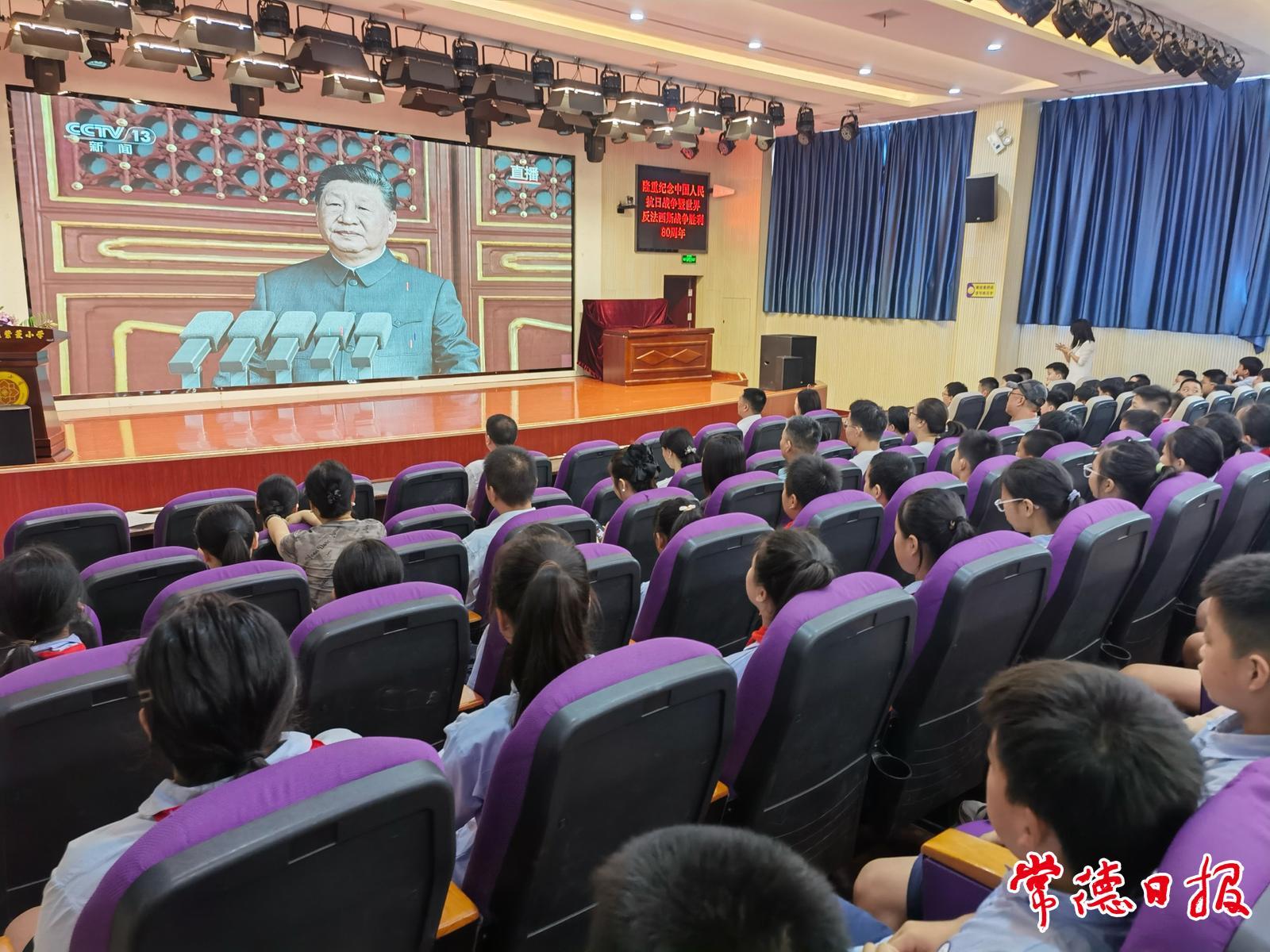 常德日报记者 黄云霞 通讯员 李慧 高虹 文/图 9月3日上午,武陵区紫菱小学组织全体师生收看纪念中国人民抗日战争暨世界反法西斯战争胜利80周年大会直播,共同见证这一庄严而神圣的时刻。