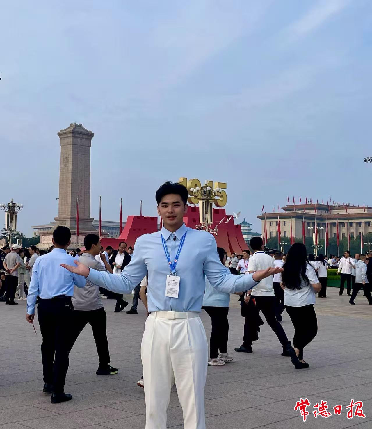 常德日报记者 黄云霞 通讯员 刘靖诗 文/图 9月3日,纪念中国人民抗日战争暨世界反法西斯战争胜利80周年大会在北京天安门广场隆重举行。来自首都40所高校的3000人广场合唱团用激昂的歌声为大会增添了庄重而热烈的氛围,常德市七中毕业生、现就读于中国音乐学院声乐歌剧系大三的马永志就是其中一员。