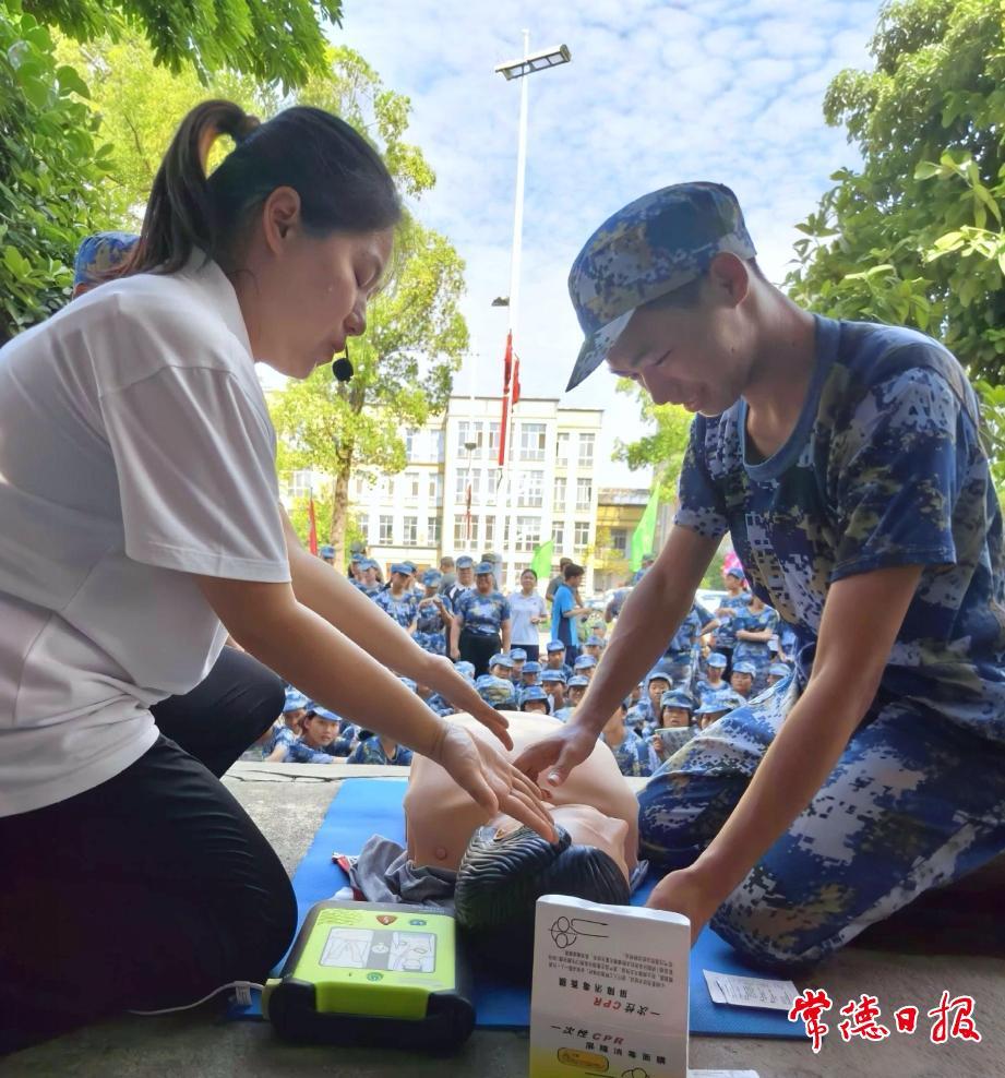 常德日报记者 王明睿 通讯员 刘瑾 文/图 9月4日,安乡县红十字会走进安乡县第五中学,为正在参加军训的高一新生开展一场以“自救互救技能培训”为主题的应急救护培训活动,旨在增强学生应对突发事件的能力,切实筑牢校园安全屏障。