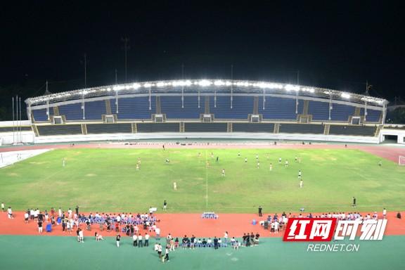 备受期待的2025湖南省足球联赛(以下简称“湘超”联赛),将于9月7日在长沙正式拉开帷幕。连日来,夜幕下的益阳市奥林匹克公园足球场格外热闹。每当傍晚时分,球场灯光便会准时亮起,将整片绿茵场映照得如同白昼,益阳队的球员们身着统一的训练服,准时出现在这里,开启高强度训练,用汗水为即将到来的湘超征程积蓄力量。