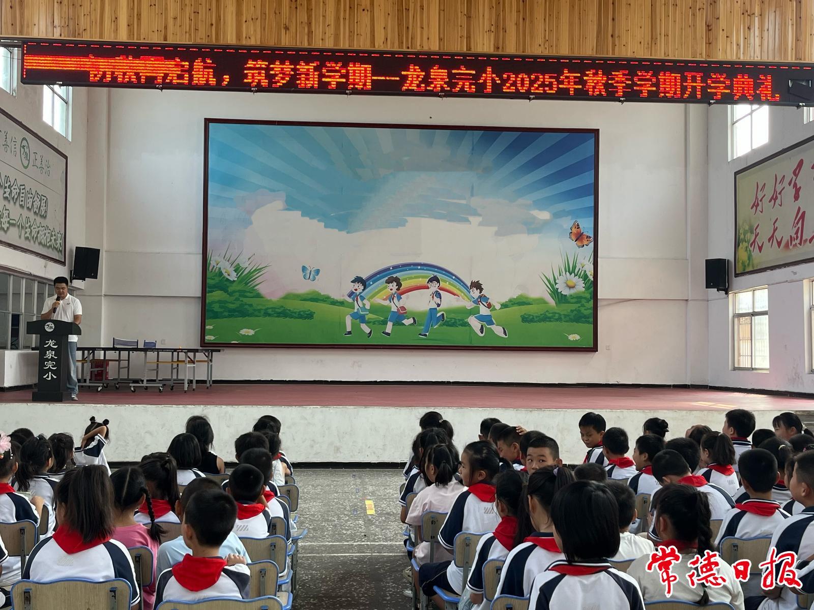 常德日报记者 杨荣国 通讯员 王芳 文/图 9月8日上午,西洞庭管理区龙泉完小校园内彩旗迎风招展,现场秩序井然,洋溢着新学期的蓬勃朝气。全体师生与爱心人士代表齐聚学校礼堂,共同参加2025年秋季开学典礼暨“9·8”助学活动,以崭新的面貌迎接新学期,并用实际行动为困难学子铺就温暖求学路。