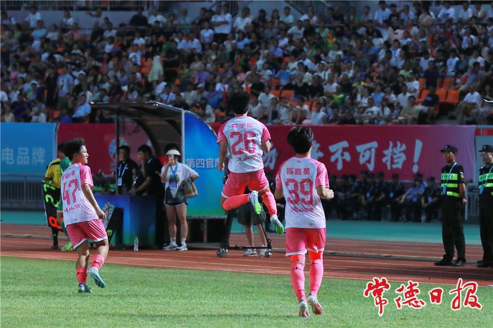 常德队7号球员李嘉睿反击再进一球。看台上响起一阵阵欢呼声。