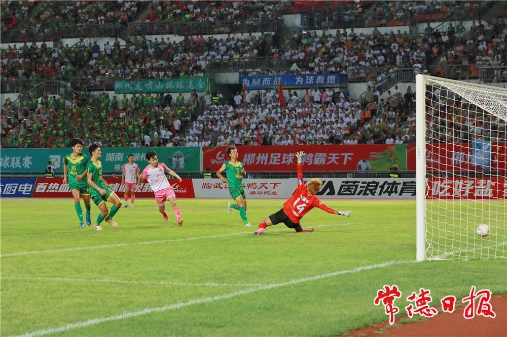 比赛进入到下半场,双方球队作出了战术、阵容调整。20时51分,常德队27号球员袁露远端射门,直接将比分改写为3:2,场面陷入胶着。随后,常德队26号球员夏宇航凭借一己之力,再进一球。