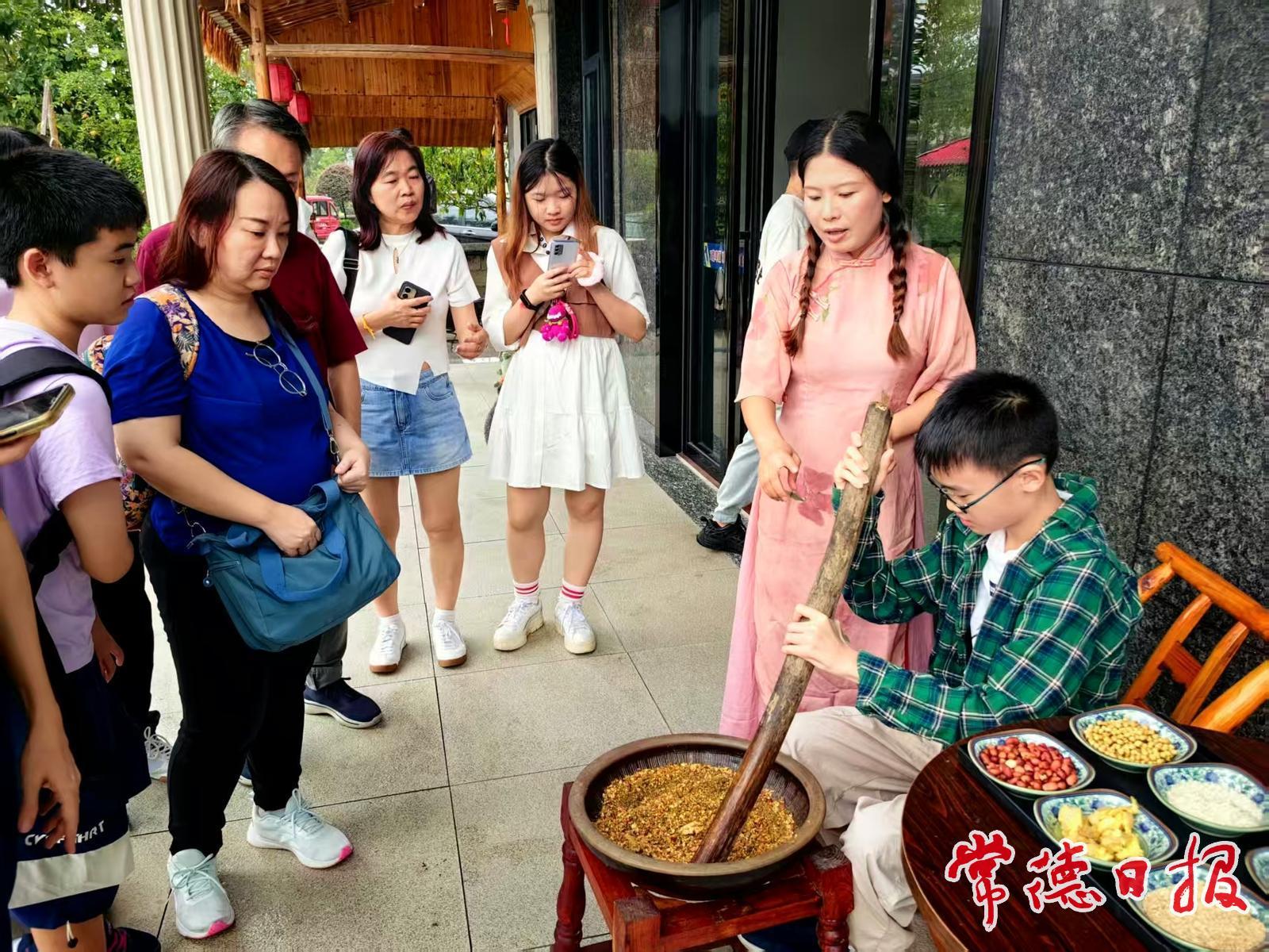 “常德很美,擂茶也好喝,尤其是制作擂茶的过程非常有趣,食材散发出的香味,都给我香迷糊了!”一位来自马来西亚的游客对擂茶宴和擂茶制作体验赞不绝口。