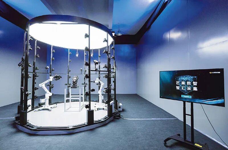 湖南省长沙市马栏山视频文创产业园以数字视频创意为龙头,汇聚了各类文化科技企业4000多家,推动文化和科技融合。基于文物神经核表面重建算法等自研技术,由芒果数智推出的数字文博大平台“山海”可大幅缩减文物采集时间。2024年8月19日,在“山海”上线发布会现场,技术团队在上海对文物“龙首”进行数字化采集,回传相关数据至长沙的实验室,并将采集结果实时发往发布会现场,整个过程耗时仅13分14秒,在文物建模被放大6—8倍后,细节依然清晰。图为发布会当日文物“龙首”数字化采集现场。 湖南省委宣传部供图