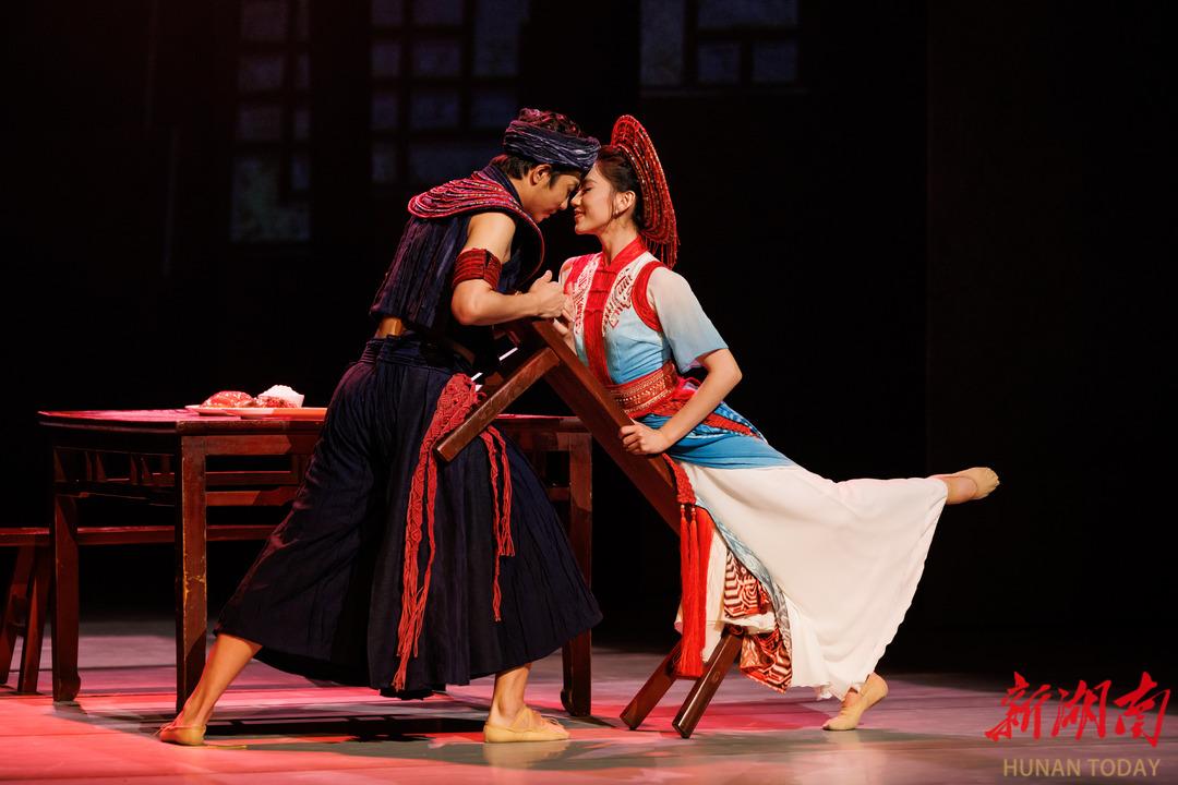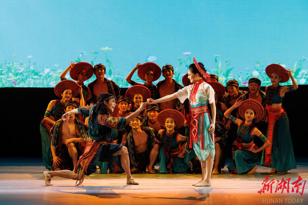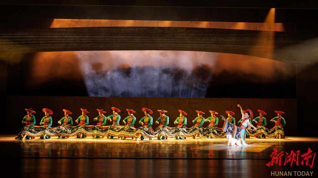 与此同时,“绿水青山就是金山银山”的生态理念也被巧妙融入剧情与舞美:沅水号子与雪峰山影交相辉映,山背梯田与花瑶挑花浑然一体。舞台通过多媒体光影技术、沉浸式舞美,让观众在愉悦的审美中感受人与自然和谐共生。