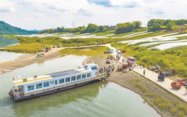 午后渡轮靠岸,市民王媛带着孩子踏上岛,难掩欣喜:“坐船、赏江、摘菜,仿佛一下子回到了童年,这种田园感太珍贵了。”