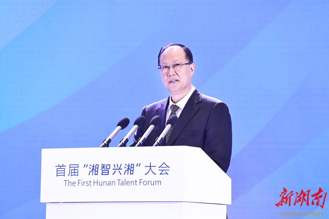 “湘智是湖南最宝贵的财富,兴湘是湖湘儿女的共同夙愿。”在致辞中,毛伟明说,近年来,湖南深入贯彻习近平总书记关于做好新时代人才工作的重要思想,锚定“三高四新”美好蓝图,全力推动高质量发展,为湘智人才大展宏图提供了广阔空间和无限机遇。举办“湘智兴湘”大会,就是要系列推进湘商回归、校友回湘、湘智兴湘,搭建起“聚才、育才、用才”的桥梁,持续做大优秀人才“蓄水池”。热忱期盼大家做创新驱动的“领头雁”、产业升级的“助推器”、引才育才的“好伯乐”,把更多创新理念、尖端技术、科研成果带到湖南,深度参与湖南“4+4科创工程”“4×4”现代化产业体系建设和重大科研攻关,助力湖南引育更多人才,打造创新人才集聚地。湖南将始终把人才作为第一资源,努力打造最优环境,让各类人才在湖南创业有机会、干事有平台、发展有空间、生活有滋味。