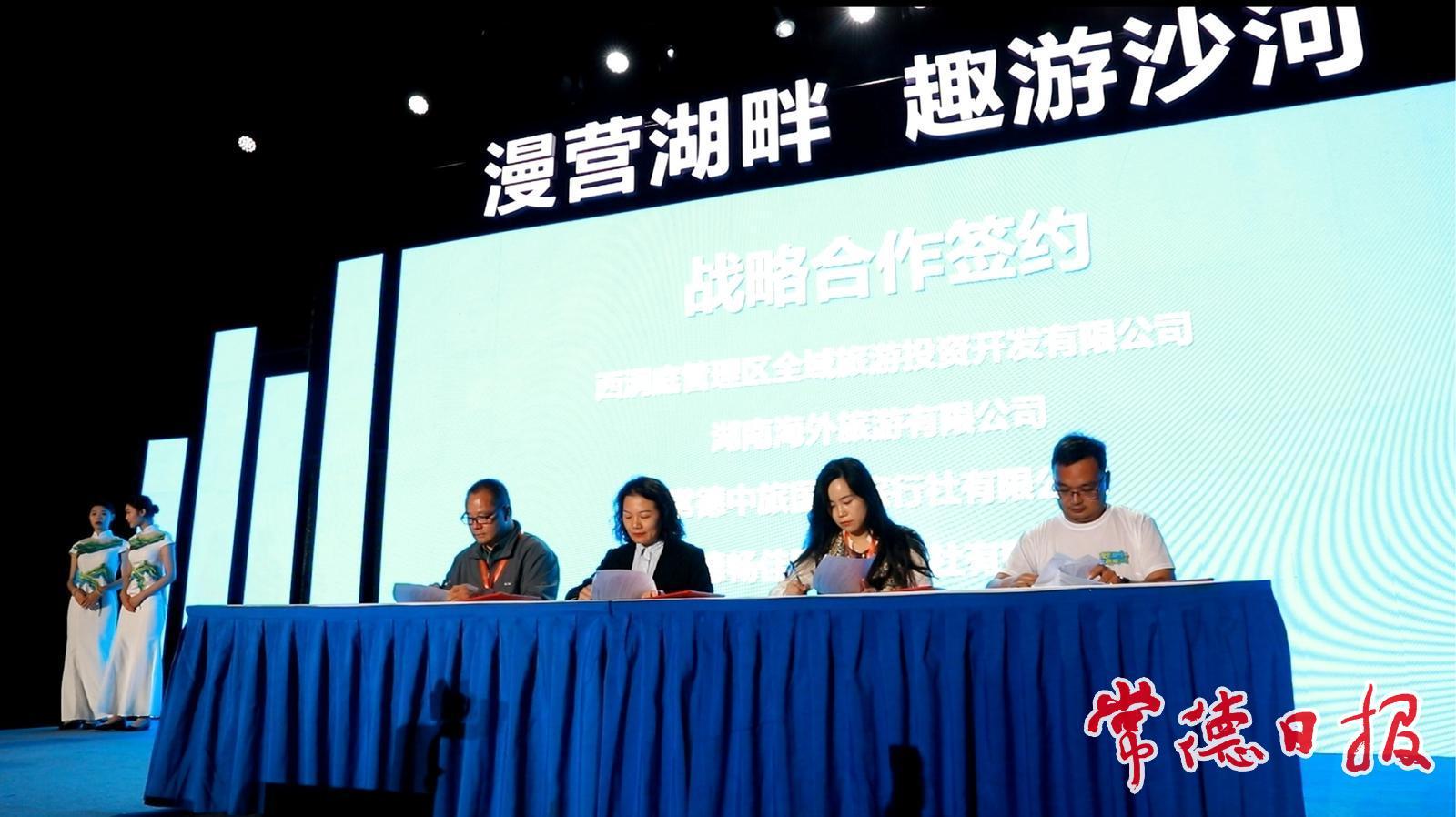 开幕式现场,西洞庭管理区全域旅游投资开发有限公司与多家旅行社签署了战略合作协议,这一举措将进一步拓宽西洞庭文旅产品的推广渠道和市场影响力。同时,5位长期深耕常德本土文旅推广的意见领袖获颁“西洞庭文旅推荐官”聘书。未来,他们将通过短视频、直播、图文等多种形式,推广西洞庭管理区的生态之美与文化故事。
