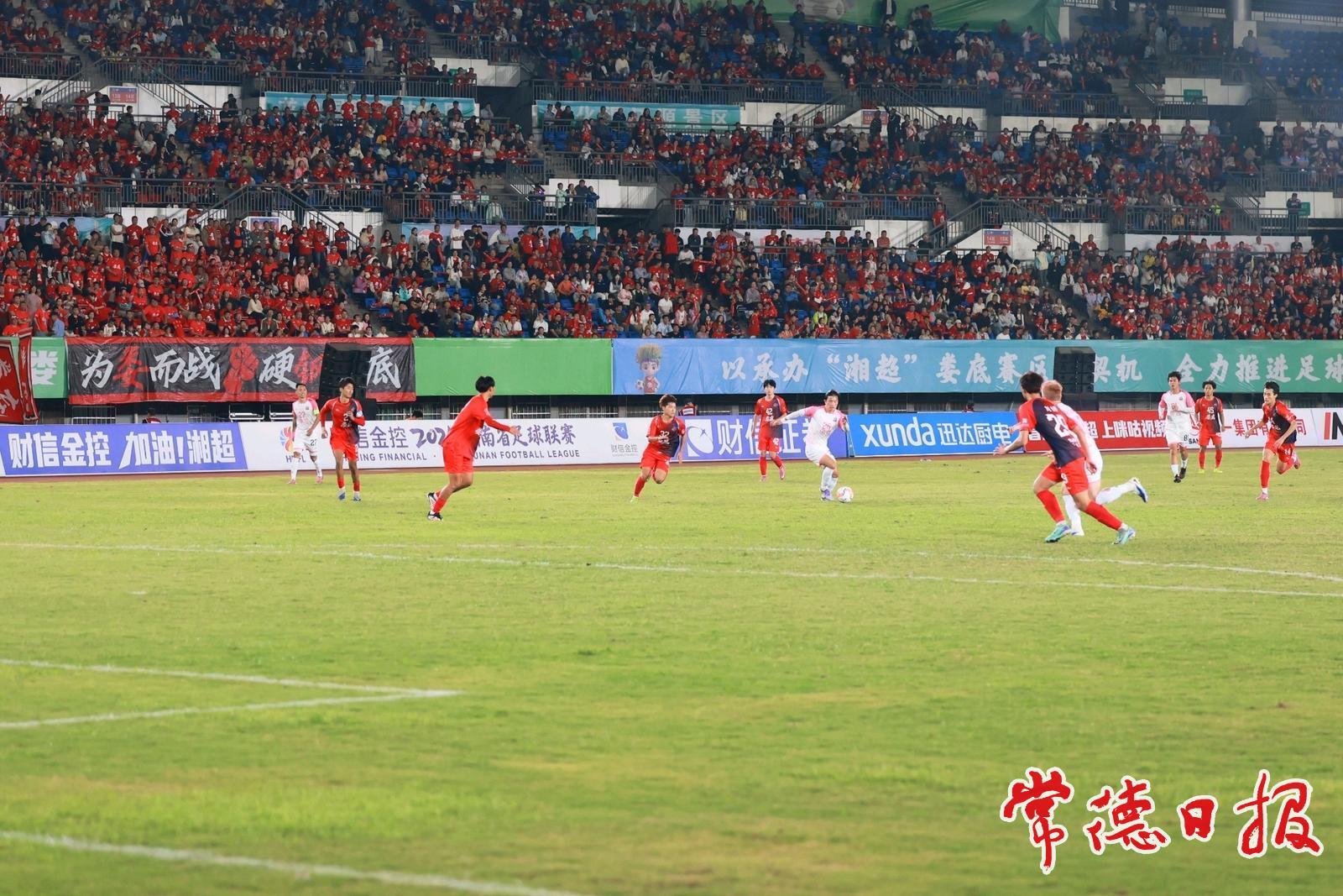 常德日报记者 王自来/文 蔡文龙/图 9月20日晚,“湘超”常德队客场对阵主队娄底队,21687名球迷现场为两队摇旗助威。依靠26号球员夏宇航的进球,常德队1比0击败对手,取得两连胜。