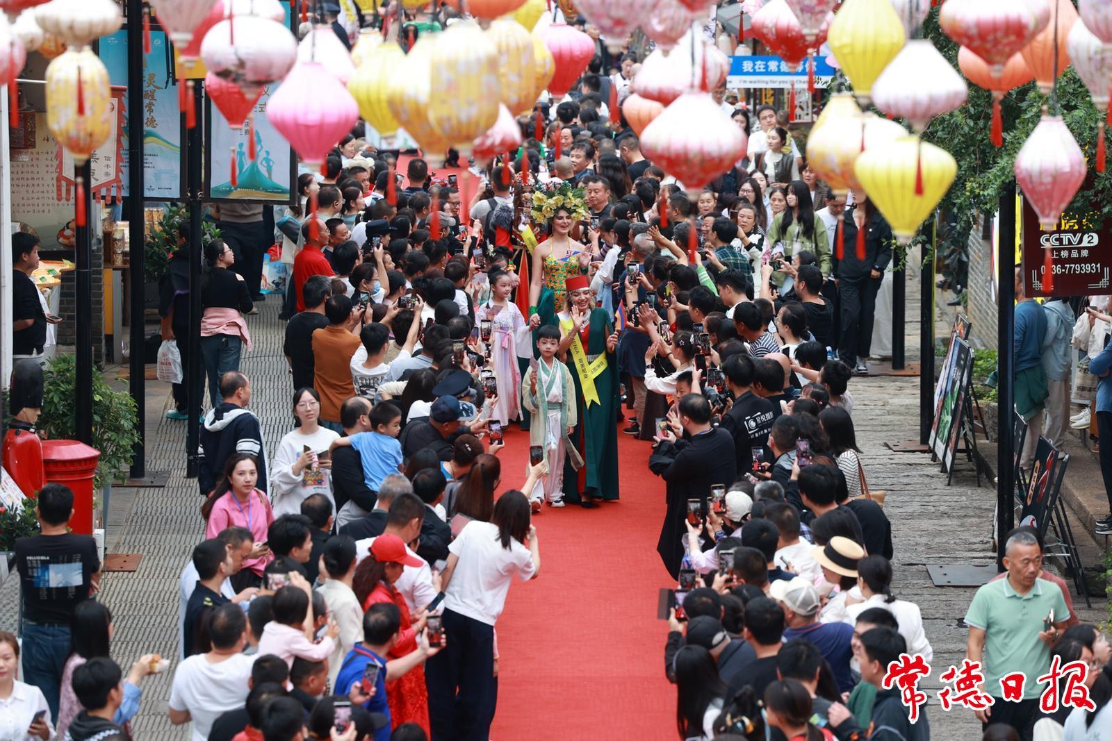 各国佳丽从常德河街西街码头出发,乘坐乌篷船沿穿紫河巡游至桃花渡码头,巡游途中观看特色民俗展演,与岸上市民热情互动,领略常德“水城相融”的现代与古典之美。佳丽们在桃花渡码头下船后步行至春秋广场,与常德少年儿童共同完成"我为常德代言"、明信片投寄等主题活动。
