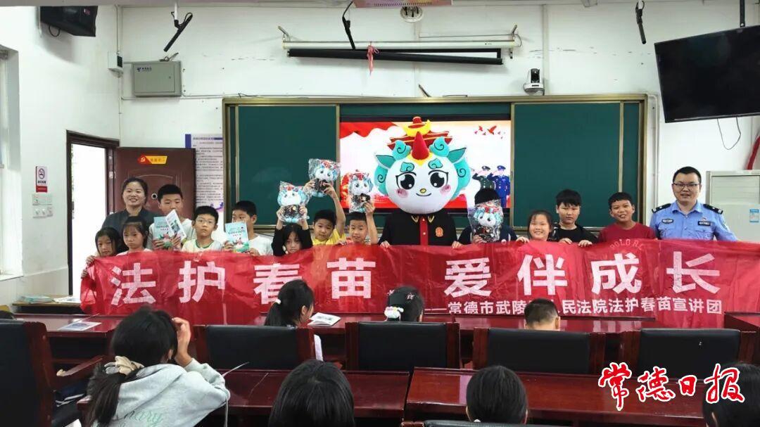 常德日报记者 李张念 通讯员 黄幸高 陆珊珊 文/图 近日,武陵区人民法院“武好青年”普法宣讲团走进武陵区河洑镇聚宝小学,为40余名小学生带来一场“法治+国防”双主题普法宣讲活动。