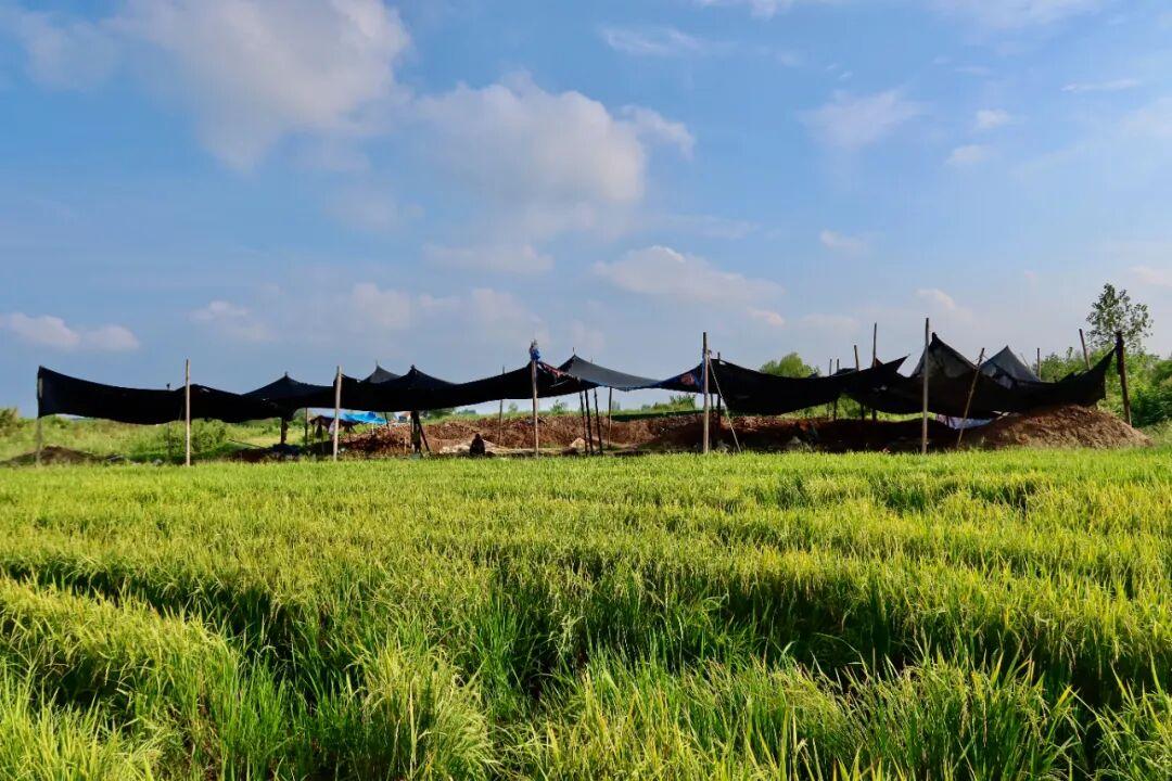 考古人员在棚子下探寻文明的踪迹。图/曹宇旋