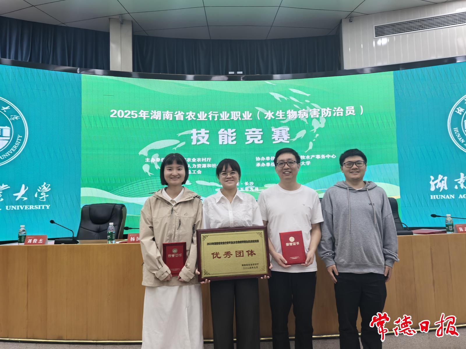 常德日报记者 曾玉英 通讯员 廖家辉 文/图 9月26日,湖南省农业行业职业(水生物病害防治员)技能竞赛在长沙落幕。常德市畜牧水产事务中心选派的3名选手表现优异,其中,来自市水生动物资源监测与病害防控中心的高巍以综合成绩第一名的优异表现,被竞赛组委会推荐授予“湖南省五一劳动奖章”,充分彰显了常德水产技术人才队伍的过硬实力和专业风采。