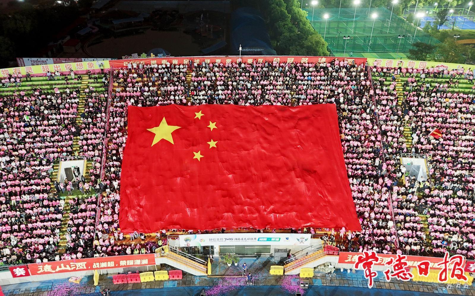 “常德常德,志在必得。”9月26日晚,常德市体育中心呐喊助威声如潮水般涌动。绿茵场上,“湘超”常德队主场对战张家界队奋力拼搏;观众席前,身着粉色球衣的常德球迷,高举队旗、挥舞助威棒,用最炽热的方式,表达着他们对常德足球的热爱与支持。