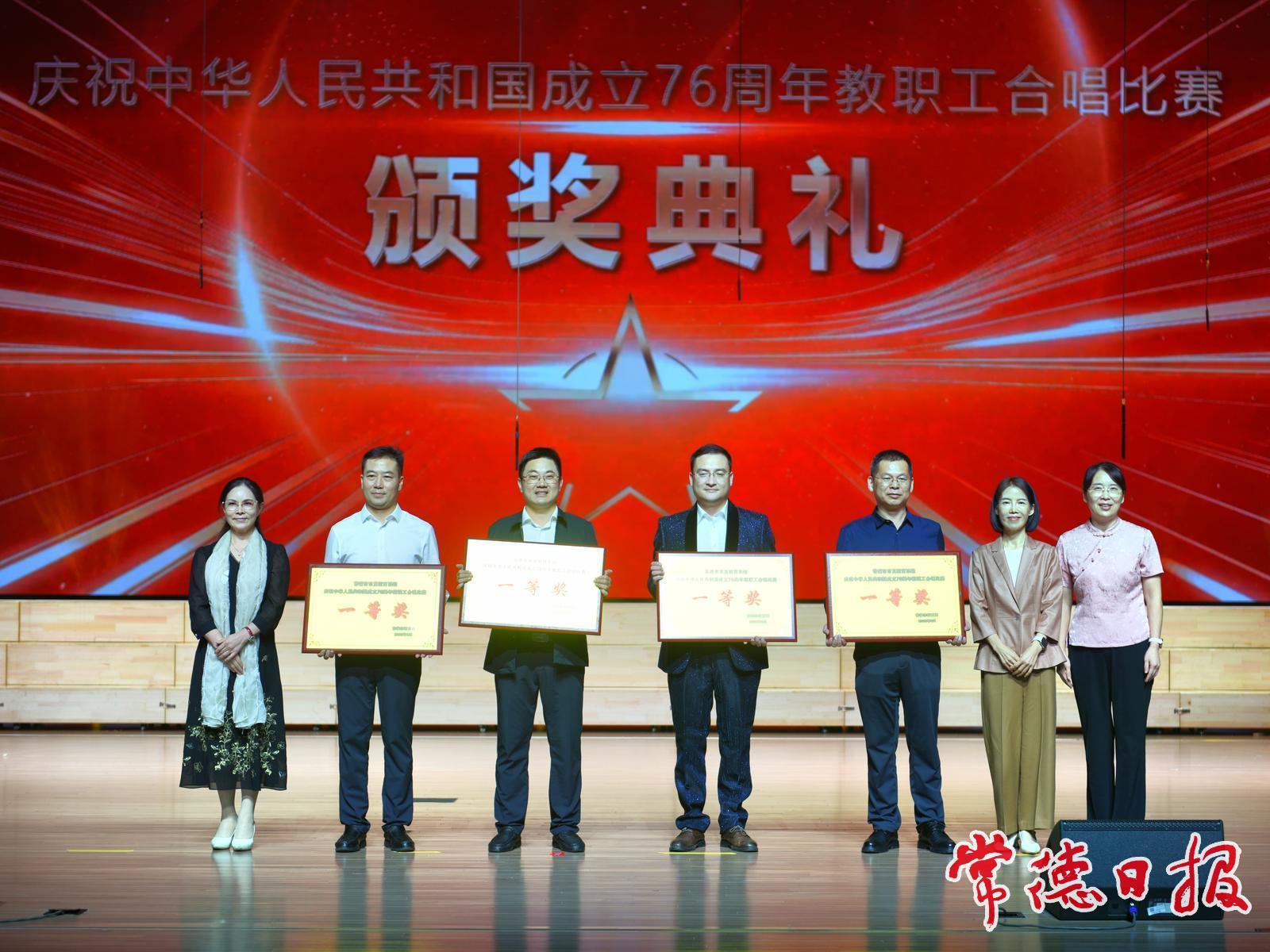 常德日报记者 韩冬 通讯员 伍伟华 实习生 栗开纪 文/图 9月27日,常德市市直教育系统庆祝中华人民共和国成立76周年教职工合唱比赛在常德学院精彩馆举行。
