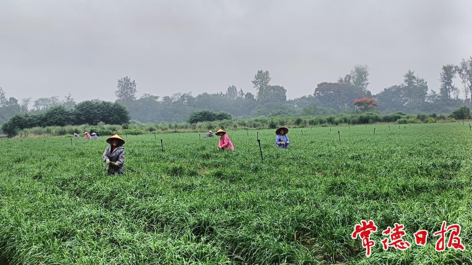 常德日报记者 曾玉英 文/图 9月27日,武陵区芦荻山乡芦山社区居民穿着雨衣,在爱地蔬菜种植专业合作社冒雨采摘韭菜花。