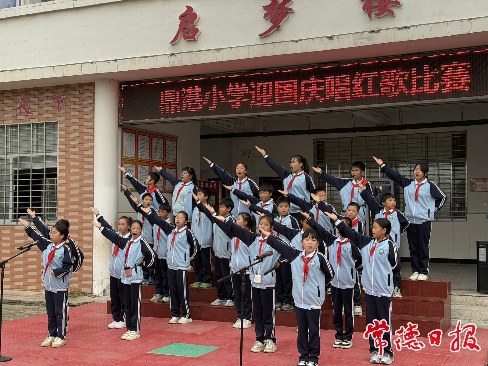 常德日报记者 杨荣国 通讯员 张敏诚 文/图 为庆祝中华人民共和国成立76周年,9月29日,西湖管理区鼎港小学成功举办2025年迎国庆唱红歌比赛。同学们以饱满的热情和嘹亮的歌声,抒发了对祖国的深情祝福,展现了新时代少年蓬勃向上的精神风貌。