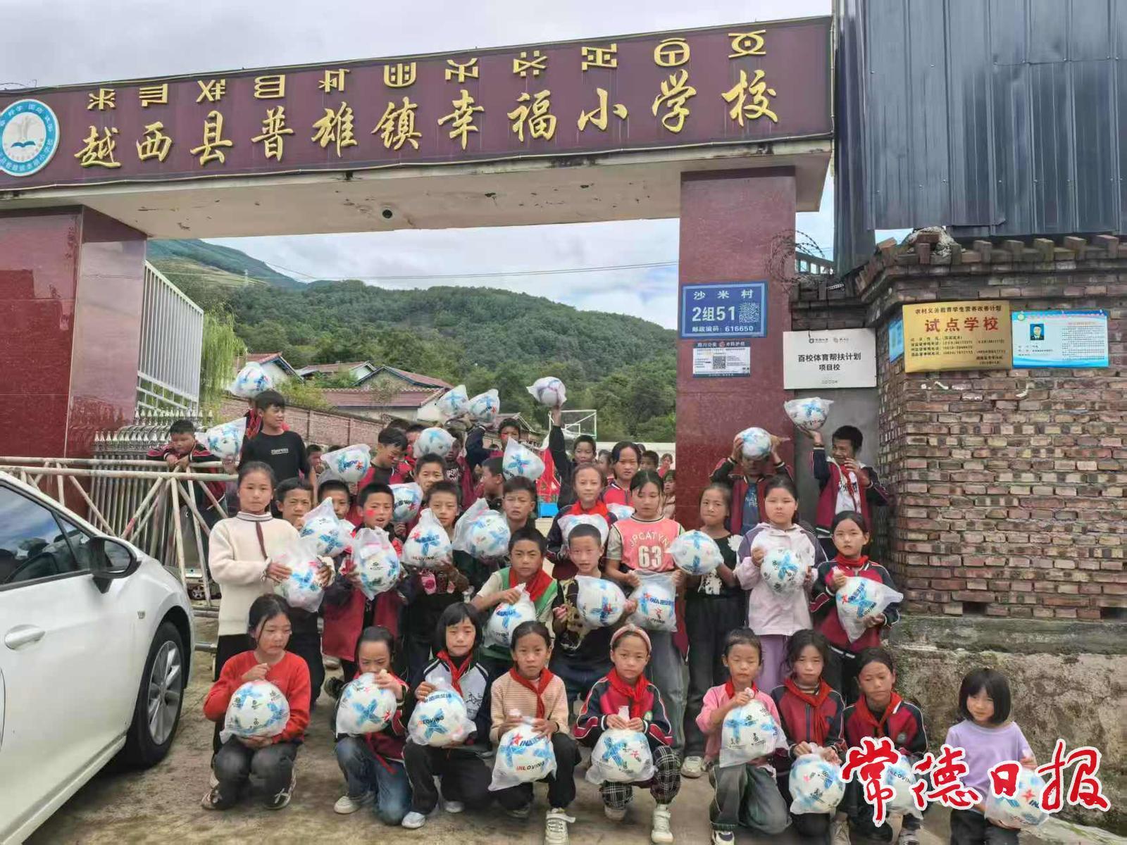 9月29日下午,这批承载着常德支教教师深情厚谊的崭新足球,从常德市送至越西县普雄镇幸福小学的孩子们手中。