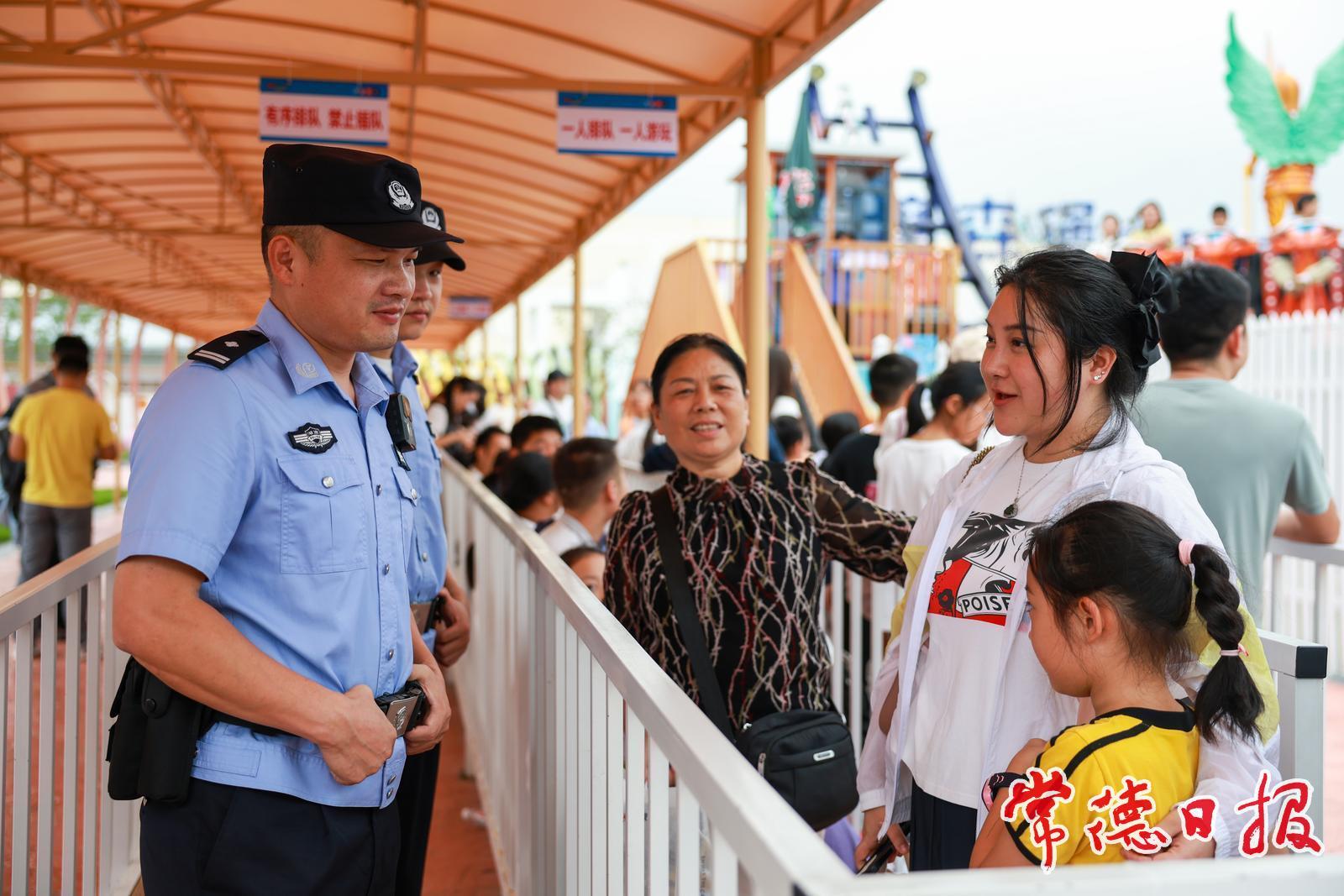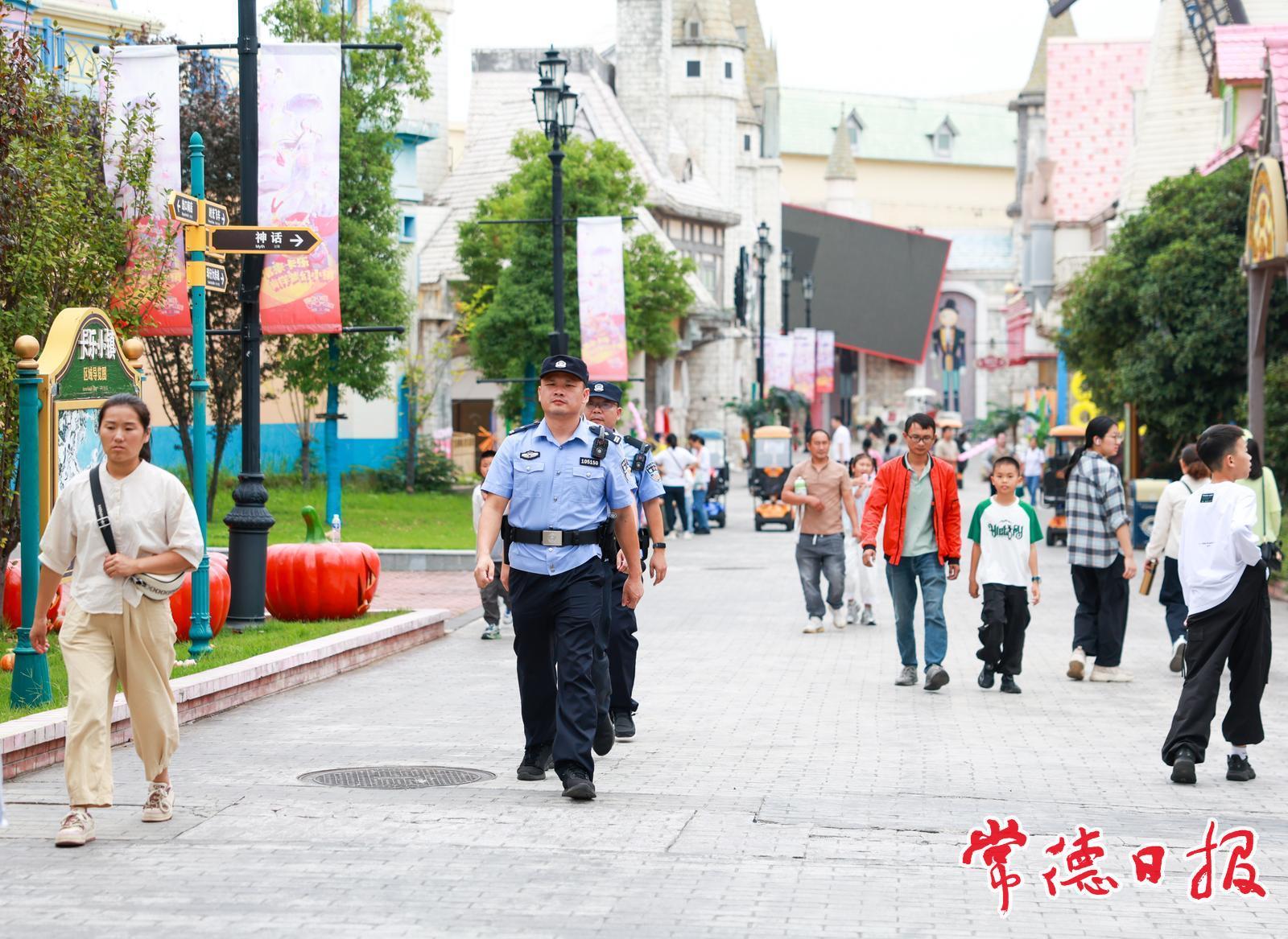 国庆中秋假期的柳叶湖旅游度假区,人流如织,欢声笑语。在卡乐星球、摩森堡c.park微动力游乐场等景区,游客们脸上洋溢着节日的喜悦。在这欢乐的海洋中,常德市公安局柳叶湖分局的民辅警们坚守在岗,护航文旅经济高质量发展。