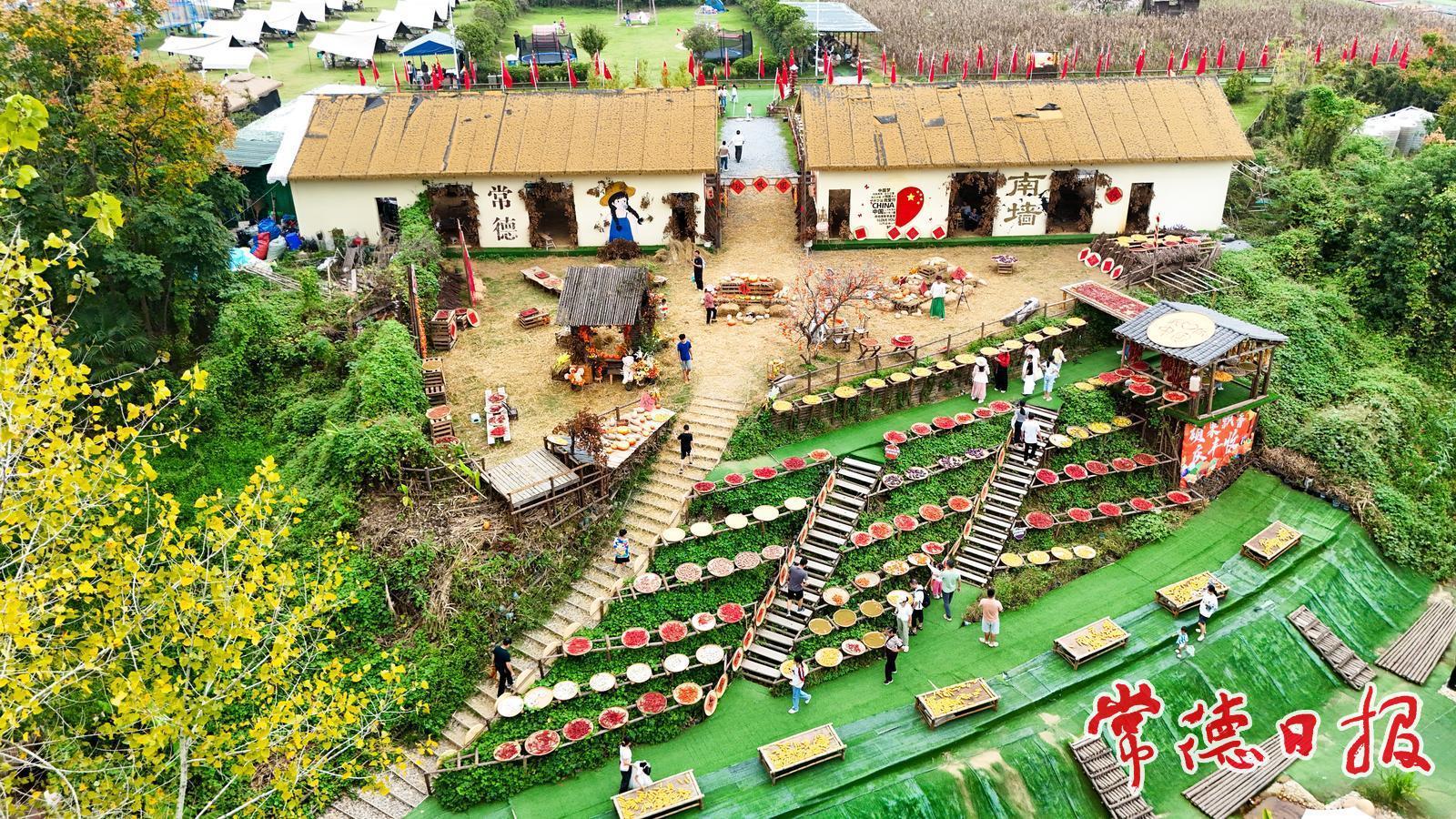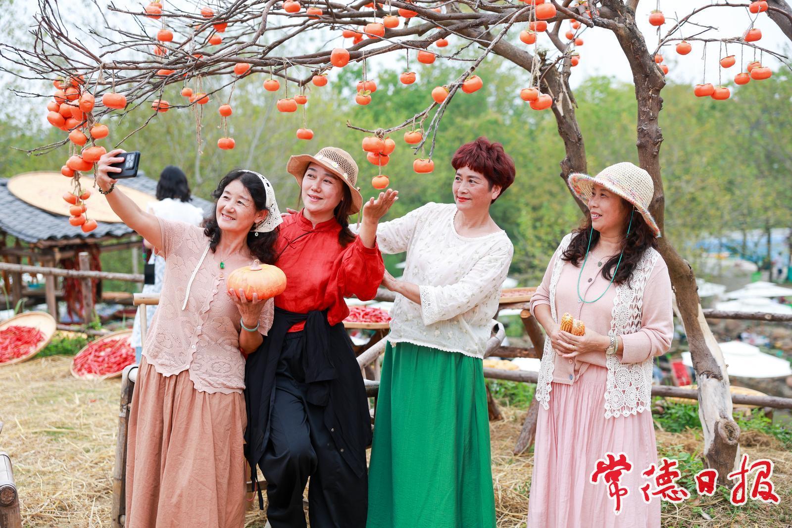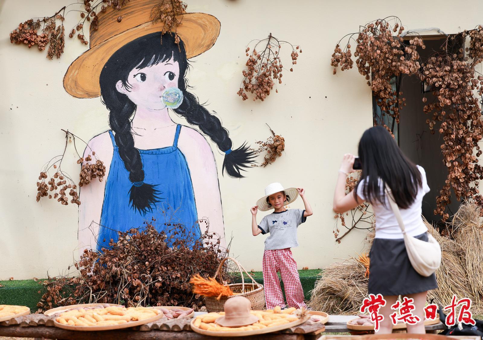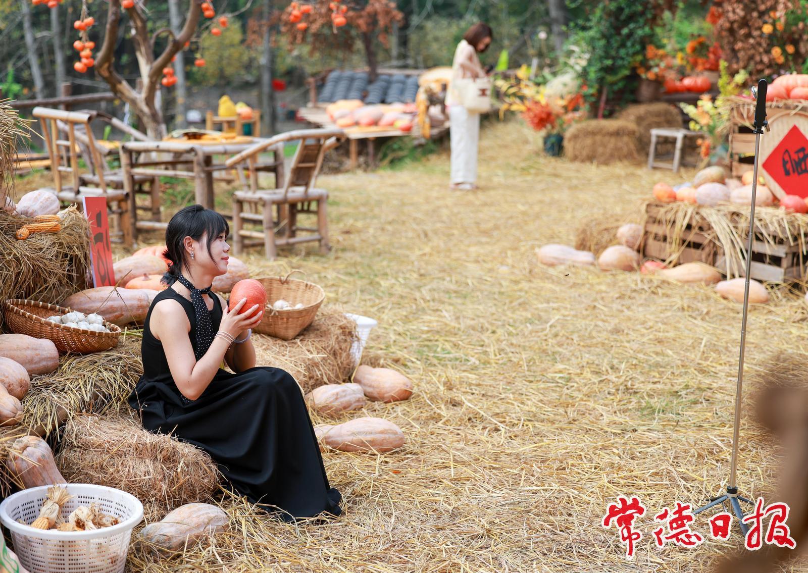 10月5日,常德市武陵区的丹野花田农场里五谷丰登、瓜果飘香,众多游客前来打卡拍照,秋日氛围浓厚,描绘出一幅生动的晒秋图景。