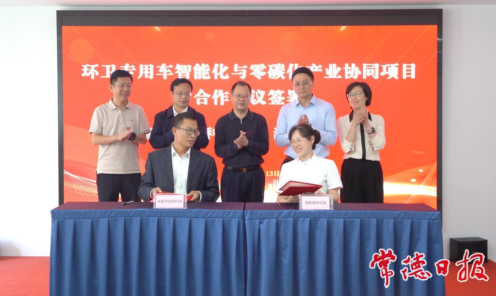 活动中,广元市剑阁县人民政府、金健米业、四川省湖南商会三方签署合作协议;成都华越疆科技有限公司与湖南瑭桥科技发展有限公司签订《瑭桥科技环卫专用车智能化与零碳化产业协同项目合作协议》。