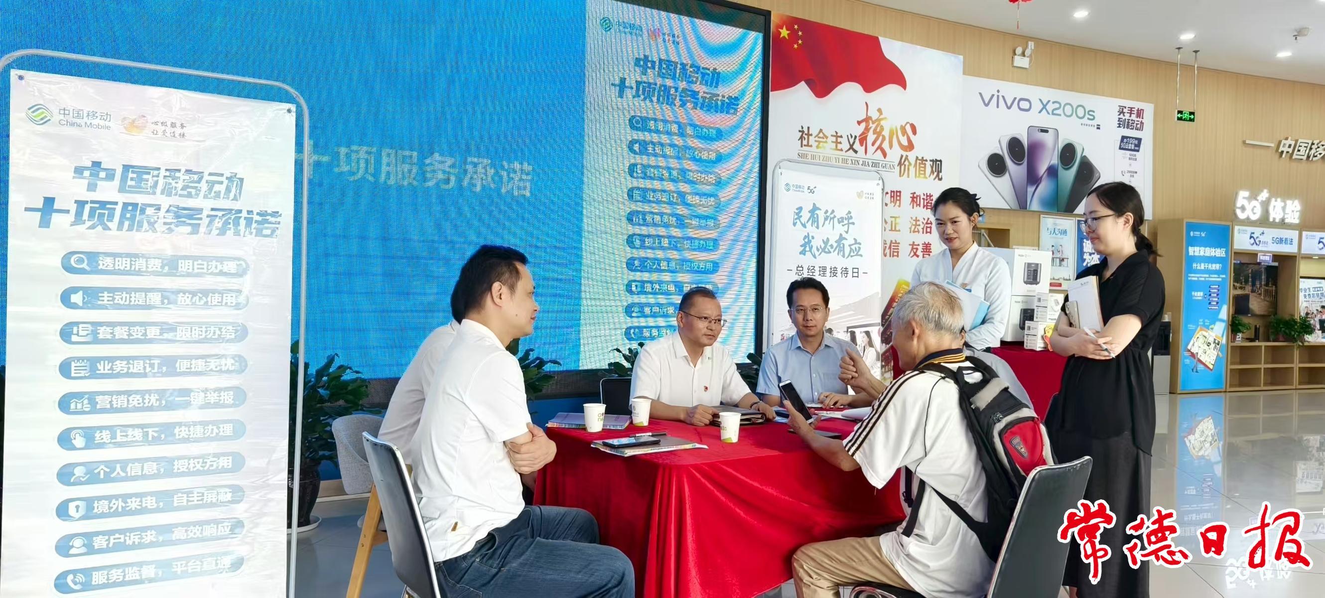 这是常德移动“总经理接待日”活动的一个普通场景。今年以来,常德移动将“总经理接待日”深度融入“民有所呼 我必有应”工作主线。活动中,公司总经理、副总经理与客户面对面沟通,针对宽带网络、手机信号、电信诈骗等高频问题,现场记录、即时解答,并推动问题闭环处理,确保客户诉求“件件有落实、事事有回音”。