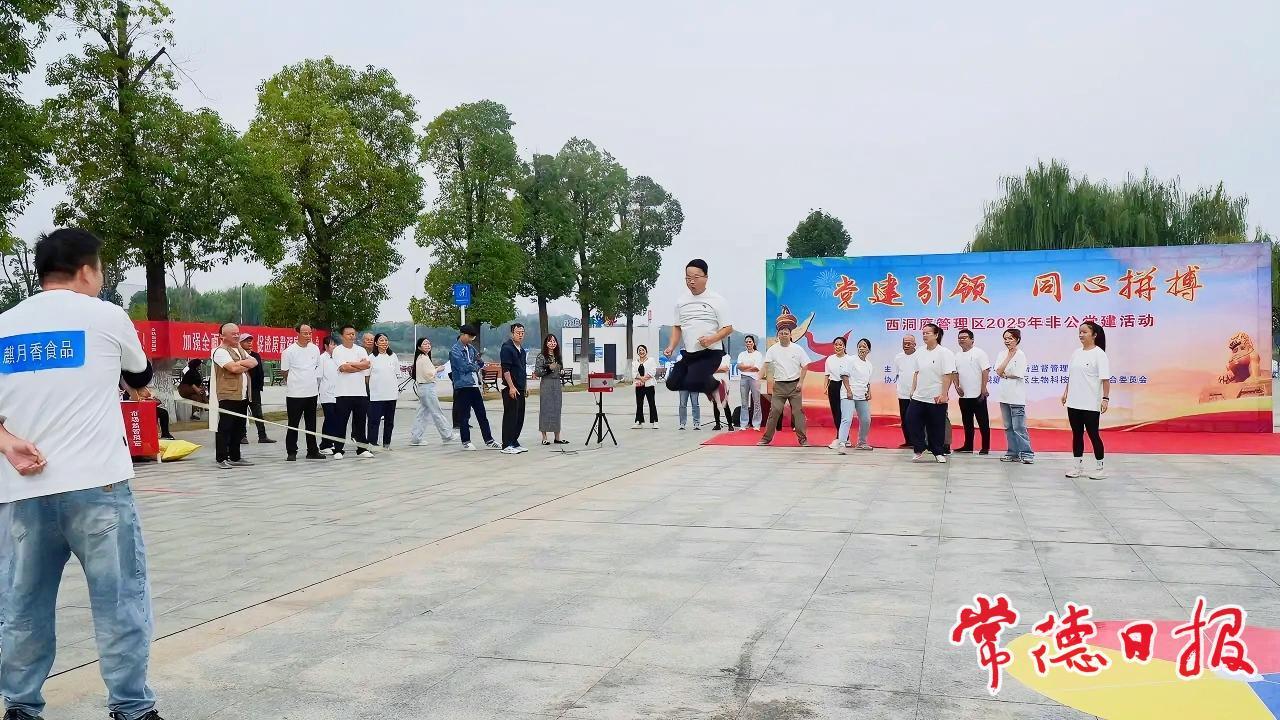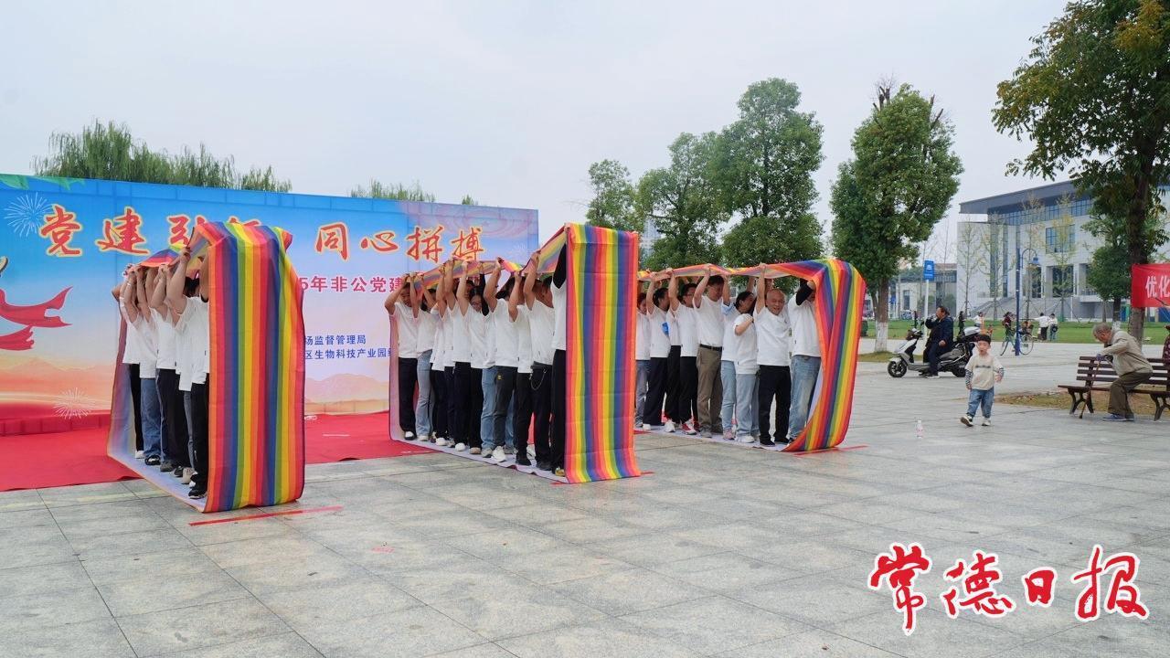 常德日报记者 杨荣国 通讯员 彭雅婷 文/图 10月15日上午,西洞庭管理区“党旗引领 同心拼搏”主题趣味运动会在沙河风光带广场顺利举行。活动由西洞庭管理区市监局主办,园区党委协办,全区41个党支部党员代表齐聚一堂,以运动促交流,以协作聚合力。