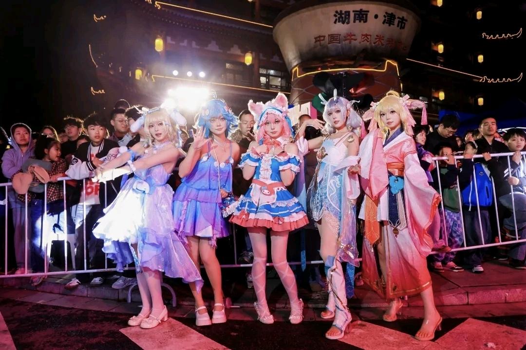 除了干货满满的产业探访,活动还为大学生们准备了充满地方特色的“惊喜”。热气腾腾的津市牛肉米粉长桌宴香气四溢,让学子们一口尝尽正宗津市米粉的鲜香麻辣;长桌宴后,64支大学生战队随即展开湖南省大学生王者荣耀挑战赛,公孙离、小乔等5位超人气“王者”coser现身助威,现场粉丝争相合影,浓厚的二次元氛围与青春活力交织,让整座津市都洋溢着蓬勃朝气。