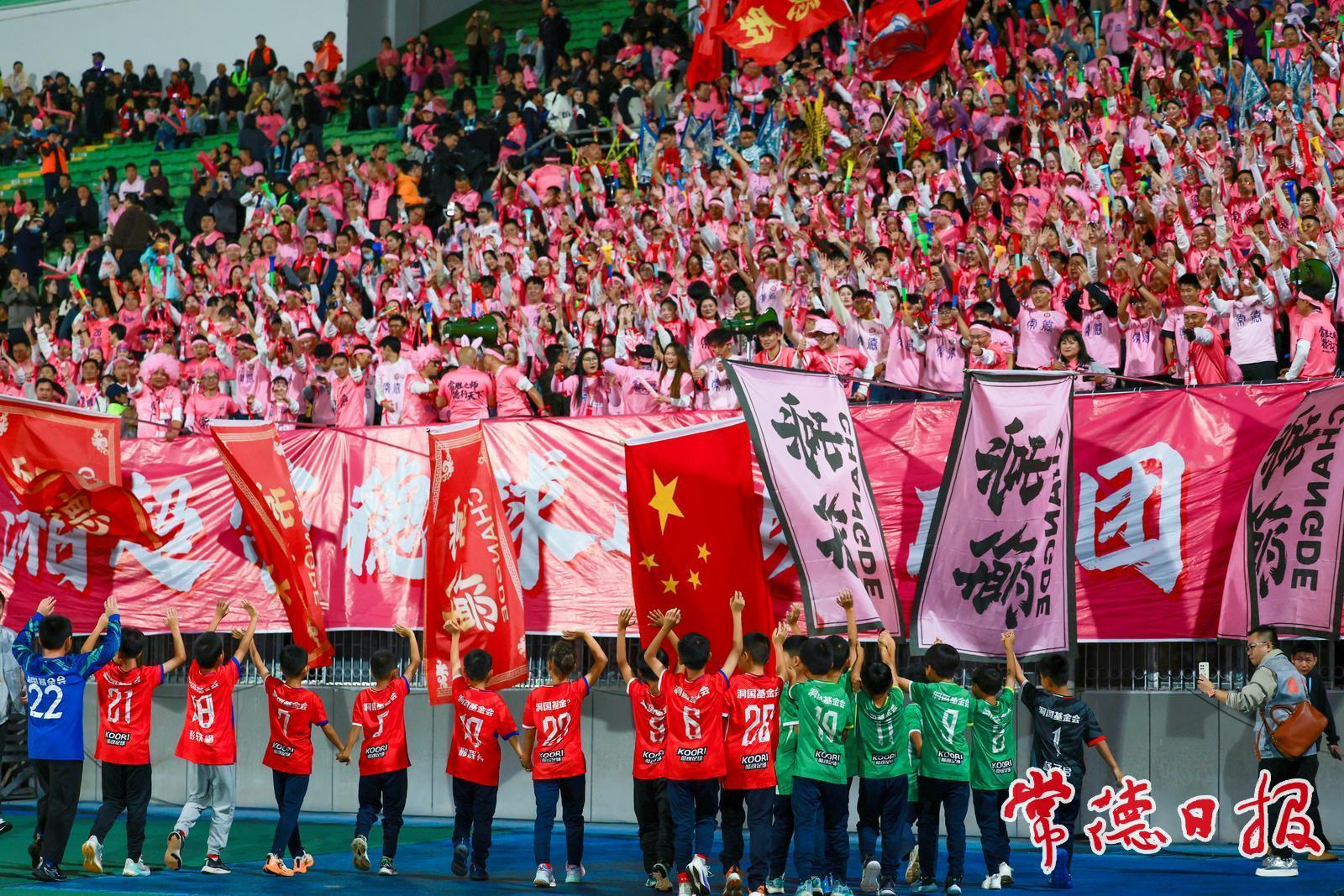 石门县第五完全小学的足球小将们向“湘超”常德球迷助威团致敬。